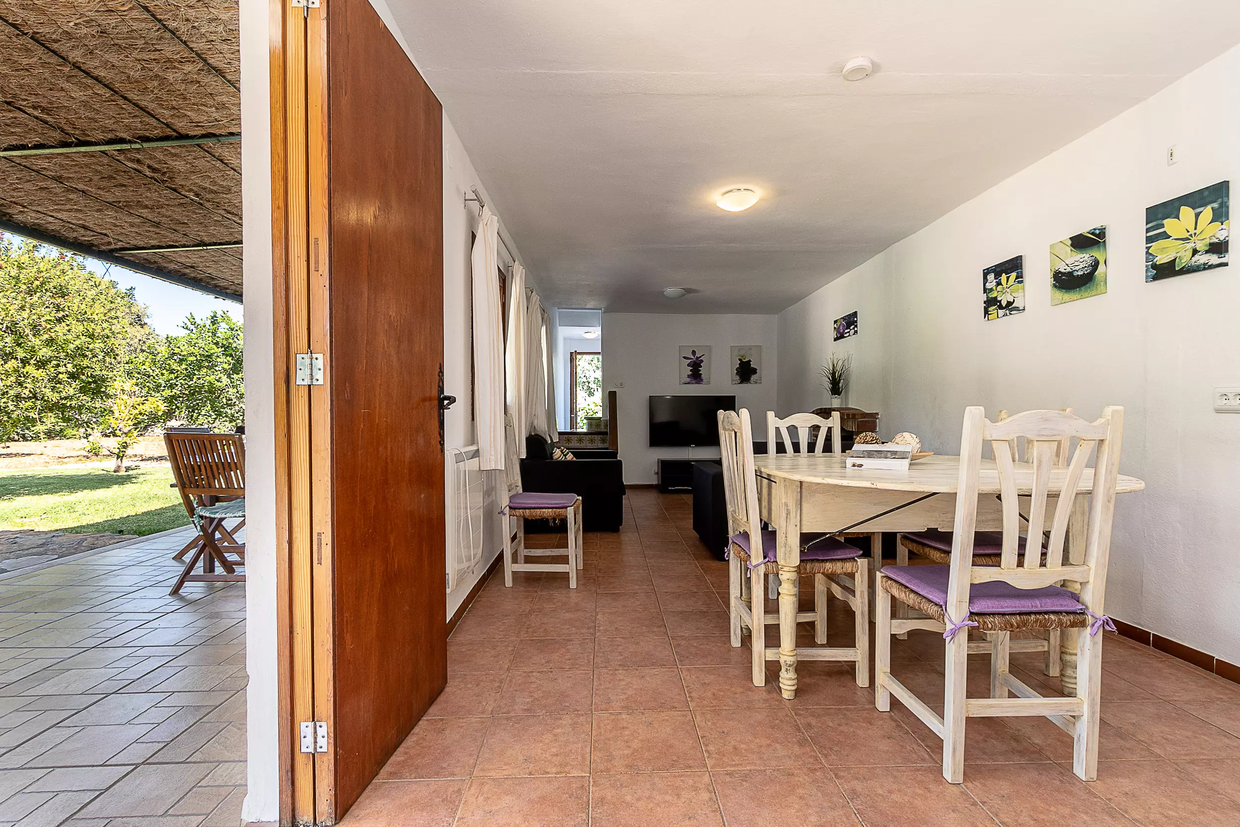 Grand salon-salle à manger avec cheminée et climatisation, idéal à la fois pour les soirées fraîches d'hiver et pour les séjours en basse saison.