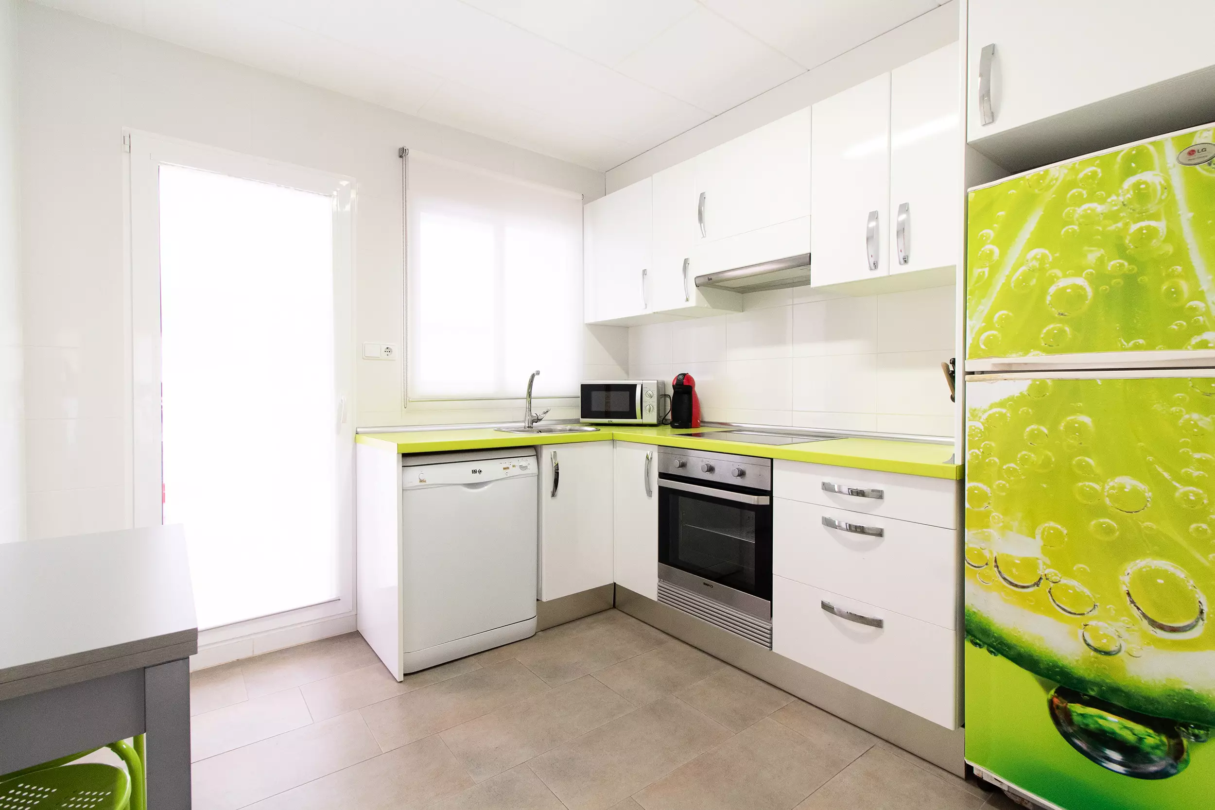 La cuisine indépendante, à vitrocéramique, est équipée avec réfrigérateur, micro-ondes, four, congélateur, lave-vaisselle, vaisselle/couverts, ustensiles/cuisine et cafetière.