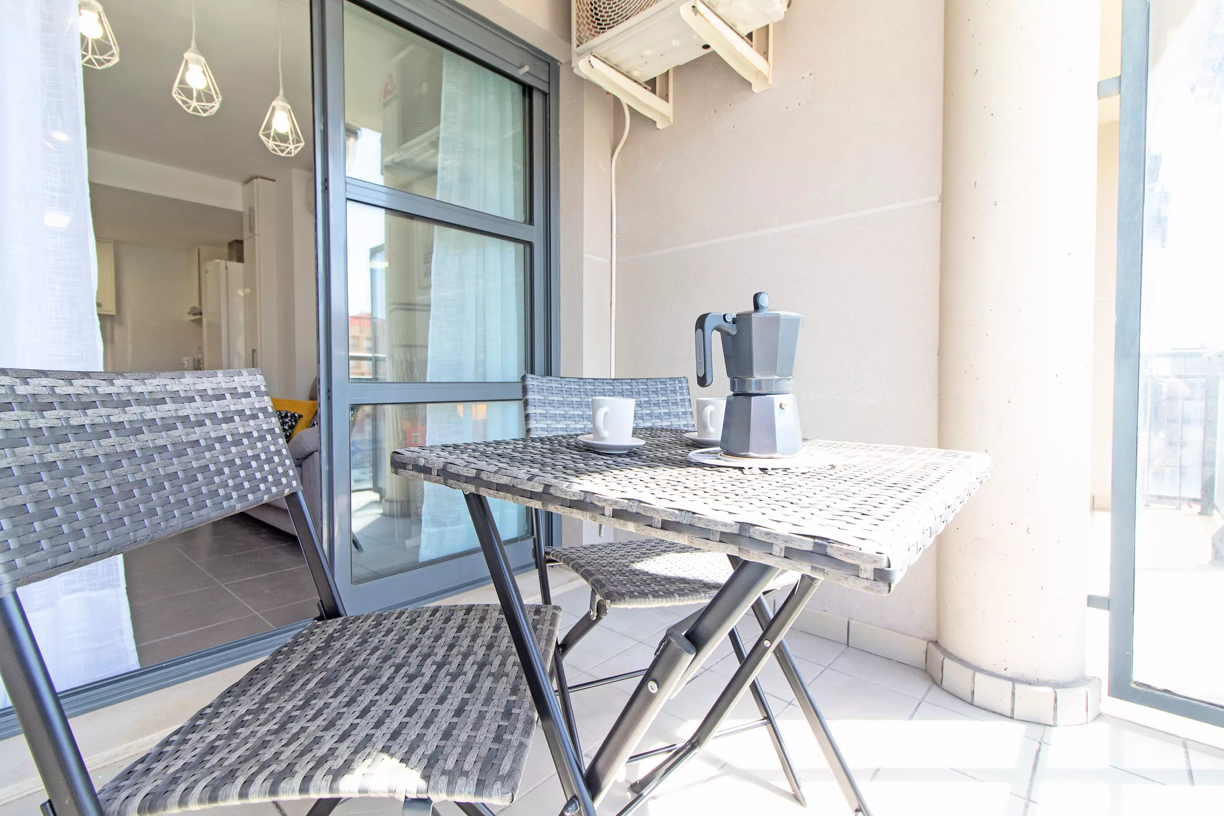 Elle dispose de ascenseur, 6 m² de terrasse, lave-linge, fer à repasser, accès internet (wifi), sèche-cheveux, climatisation dans le salon, parking couvert même bâtiment, 1 ventilateur.