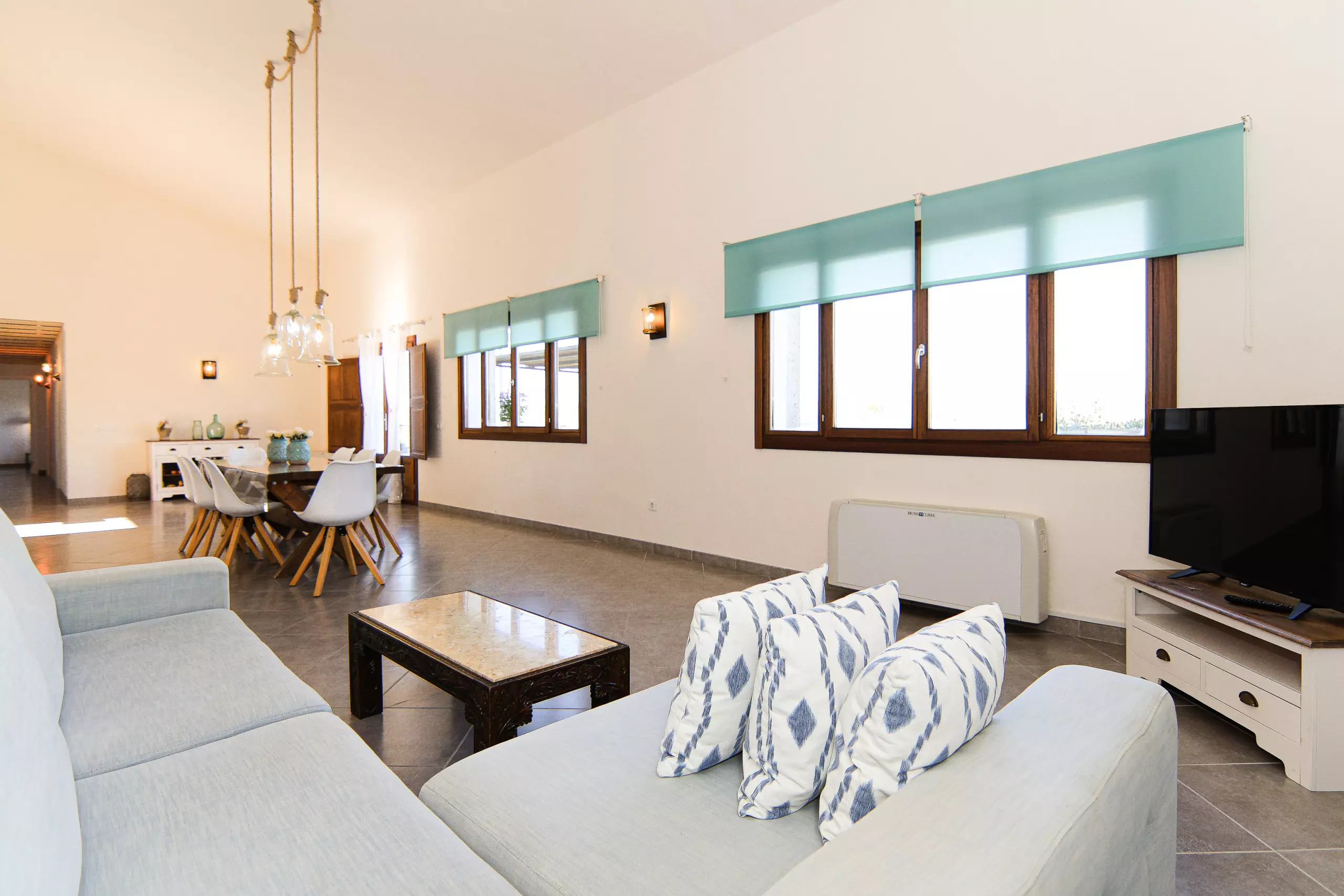 Caluix est une spectaculaire maison de campagne revêtue de pierre avec une piscine impressionnante, située entre les paysages charmants de Sineu, au cœur de l'île de Majorque. Cette charmante propriété de plain-pied offre une distribution idéale, avec une cuisine indépendante et très spacieuse, un salon-salle à manger accueillant, 4 chambres doubles confortables et 3 salles de bains complètes, toutes alimentées par de l'énergie solaire durable.