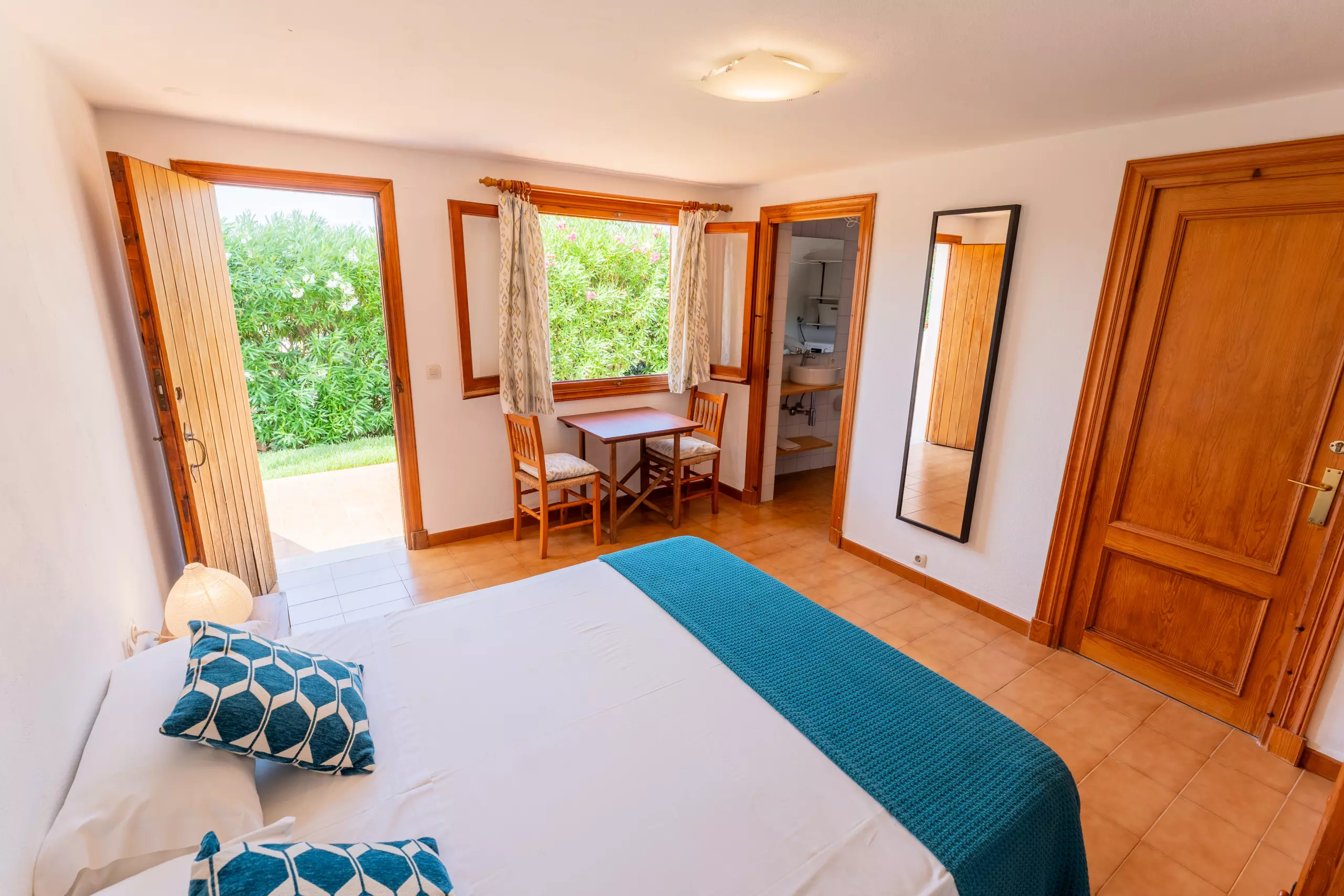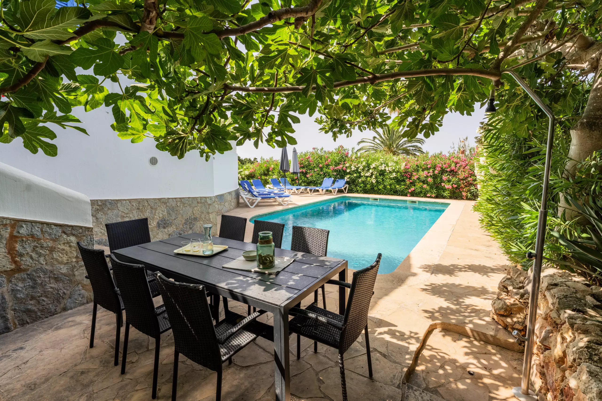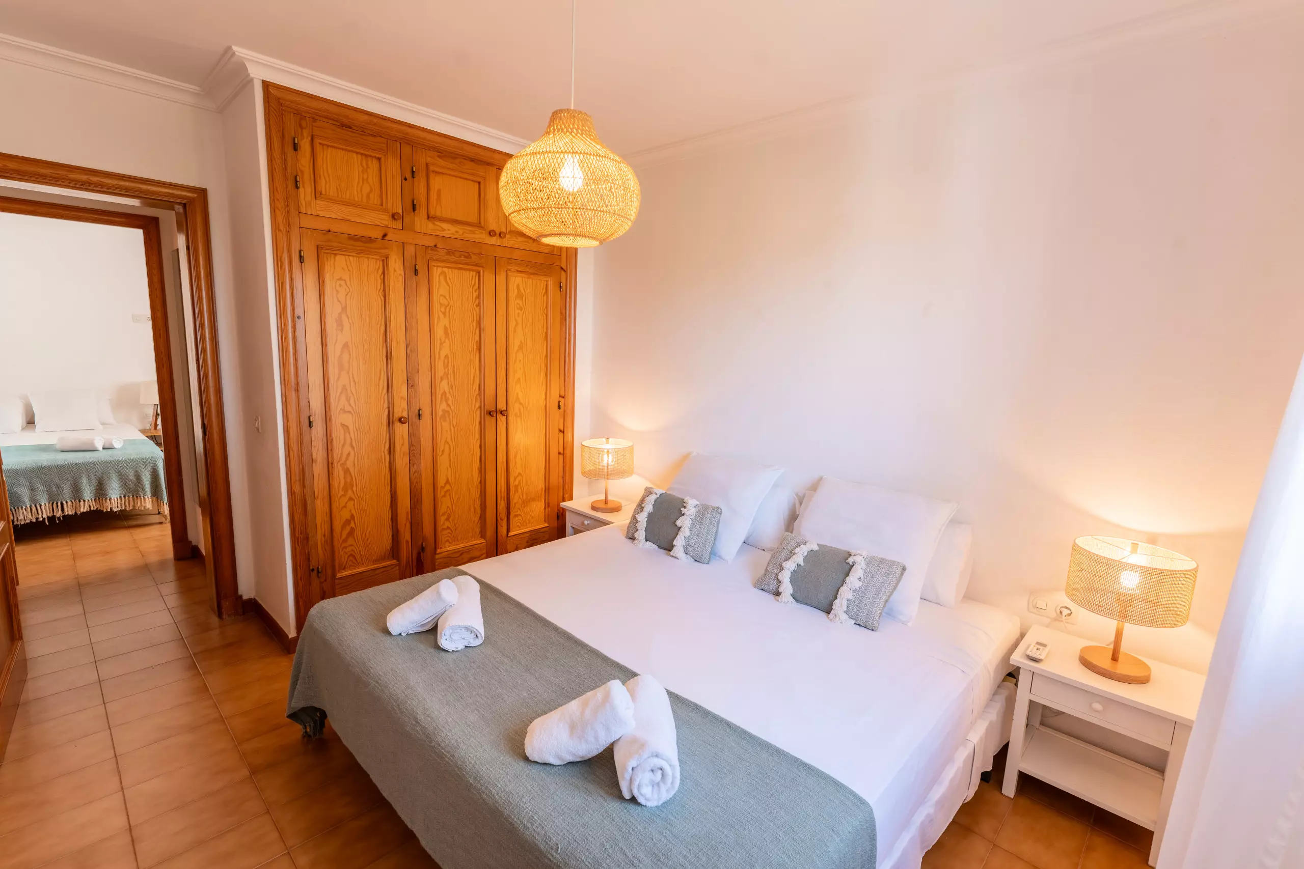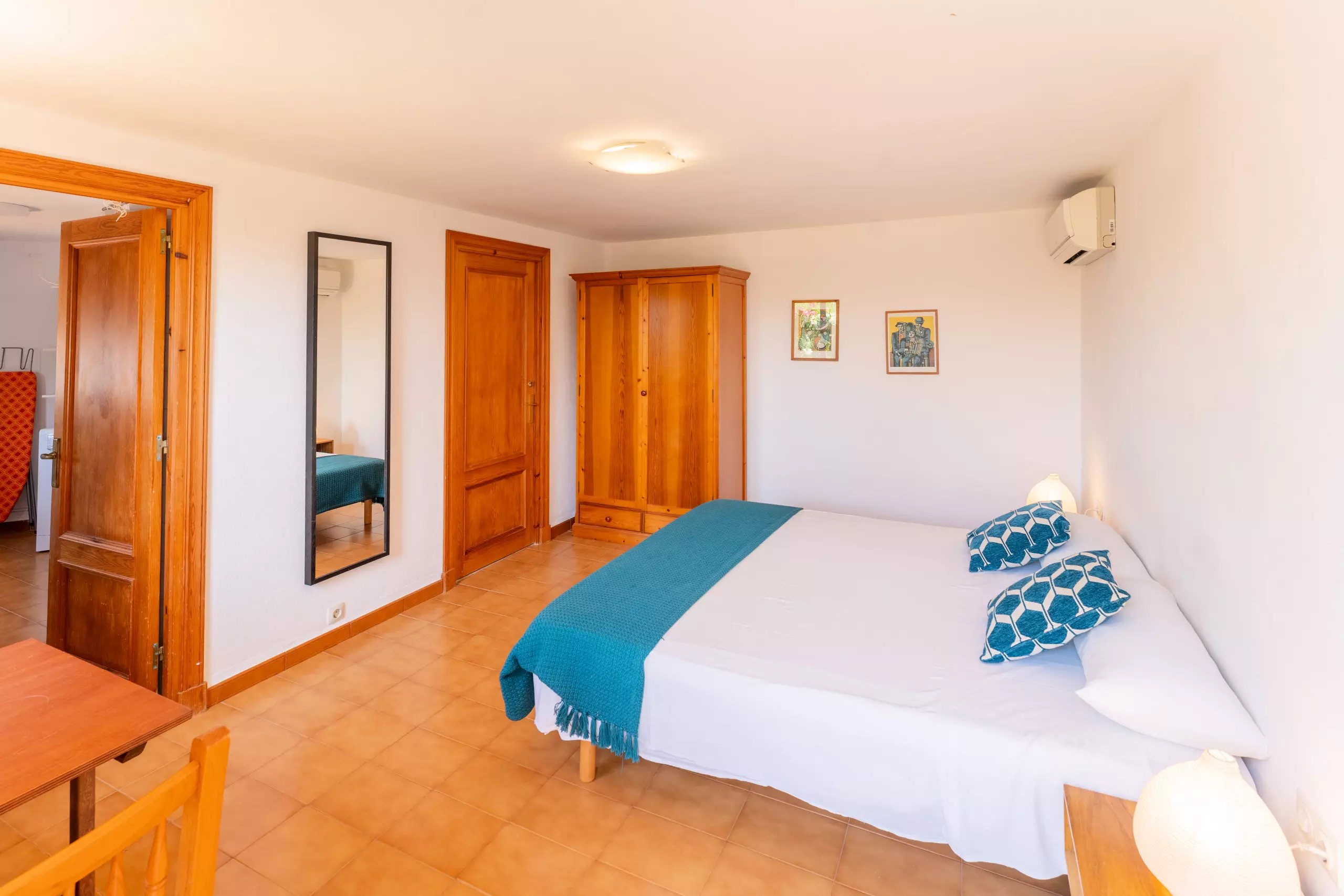 L'intérieur de la villa est entièrement climatisé avec la climatisation et offre 4 chambres avec 6 lits (2 doubles et 4 individuels), ce qui permet une distribution flexible pour différents types de groupes. Elle dispose de 3 salles de bains, 2 avec douche et 1 avec baignoire, facilitant la cohabitation des invités.