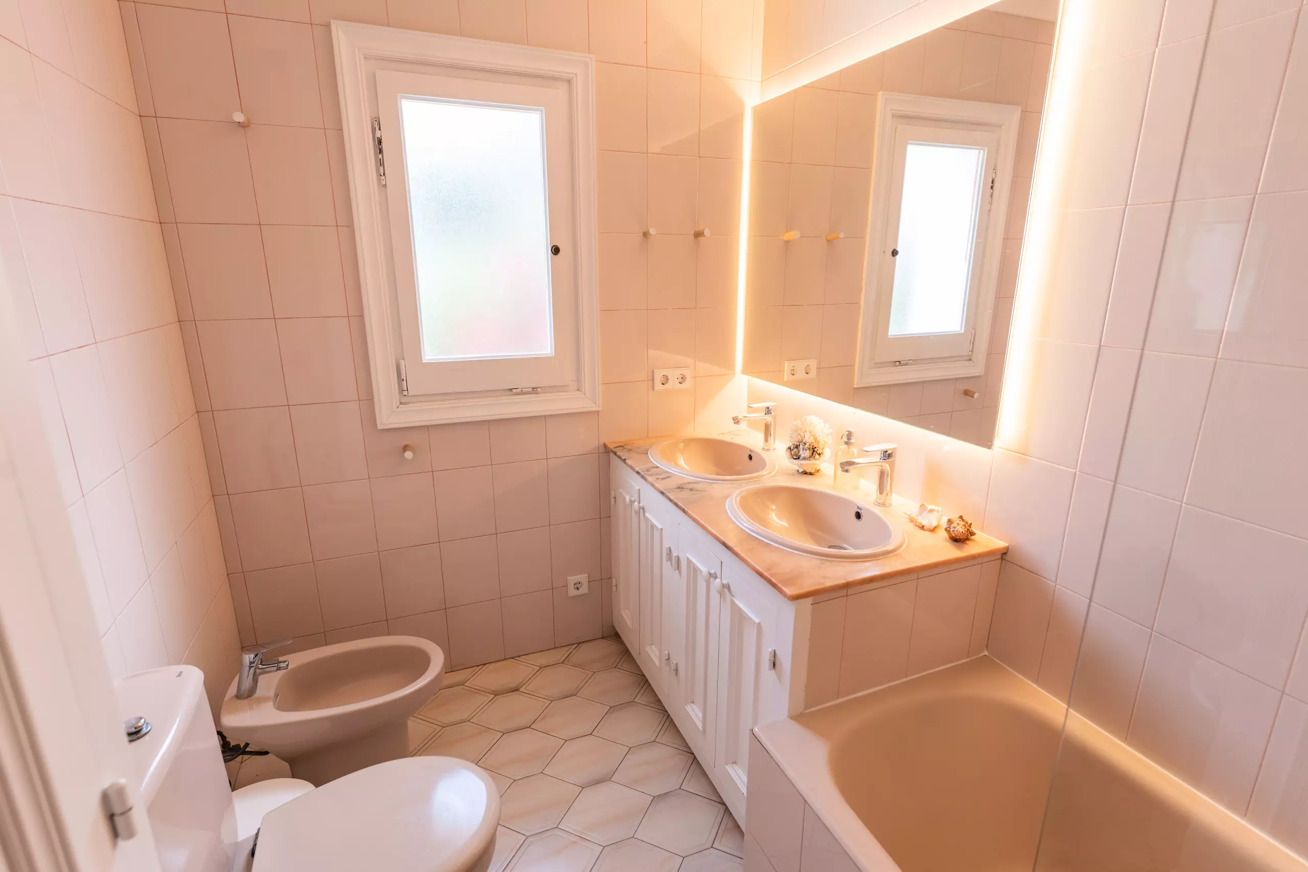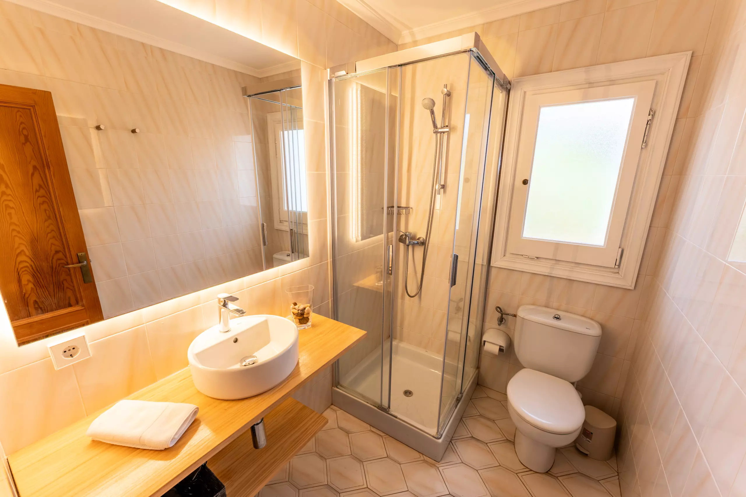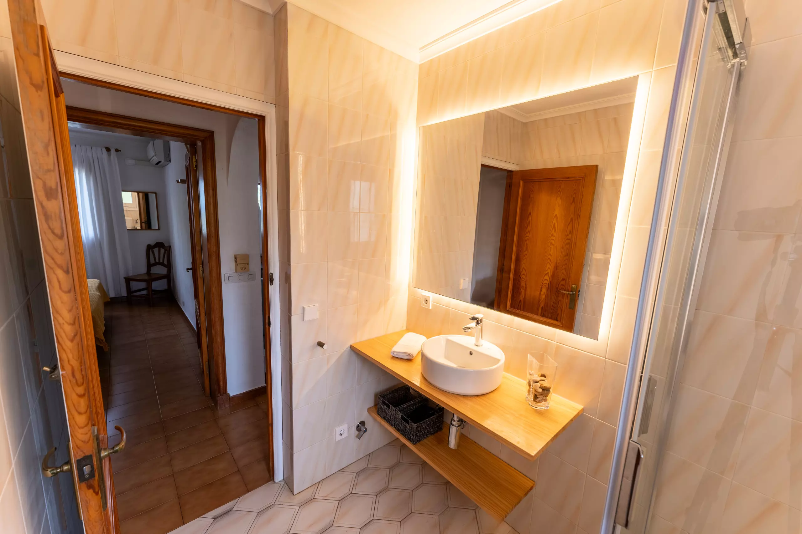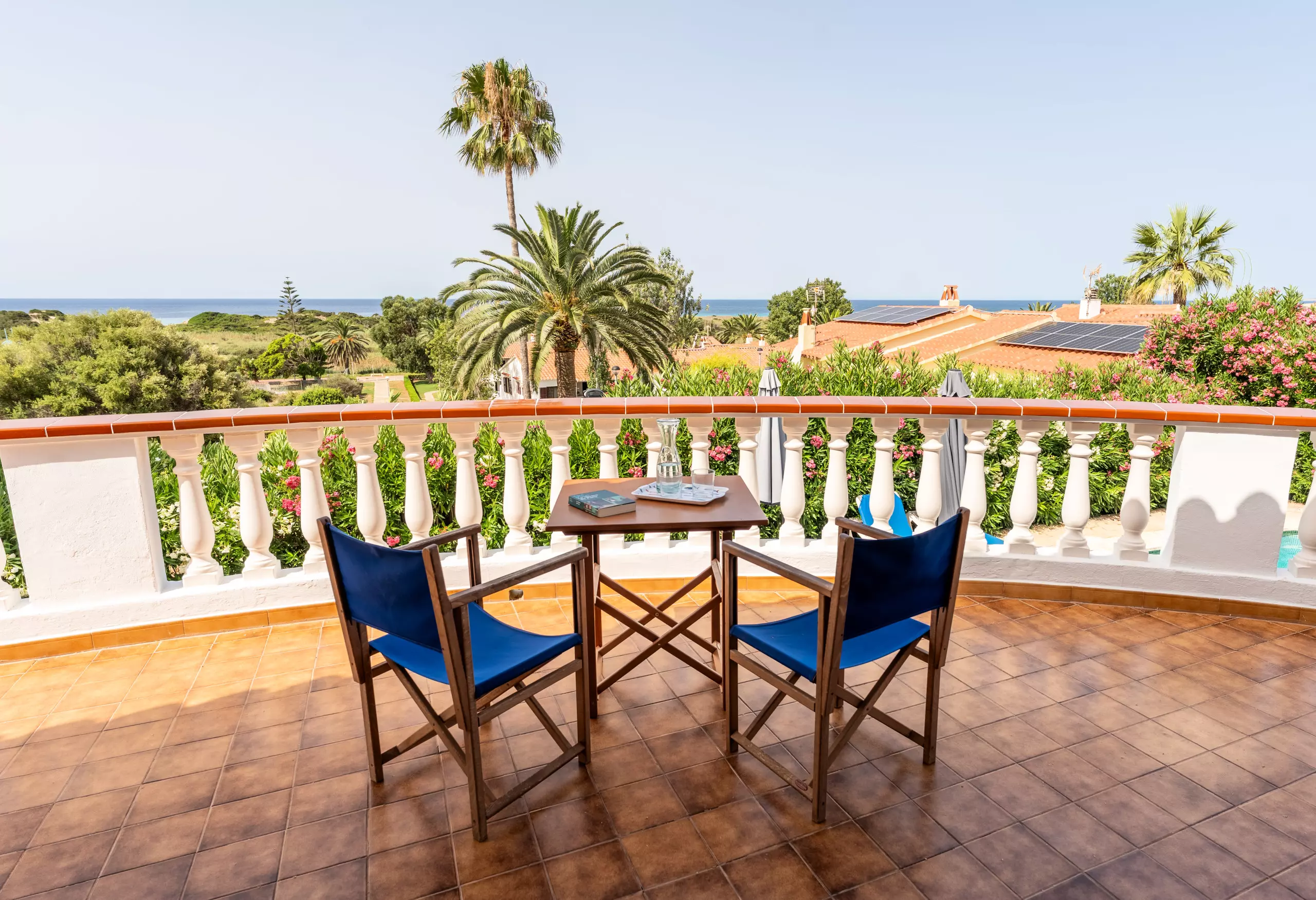 L'intérieur de la villa est entièrement climatisé avec la climatisation et offre 4 chambres avec 6 lits (2 doubles et 4 individuels), ce qui permet une distribution flexible pour différents types de groupes. Elle dispose de 3 salles de bains, 2 avec douche et 1 avec baignoire, facilitant la cohabitation des invités.