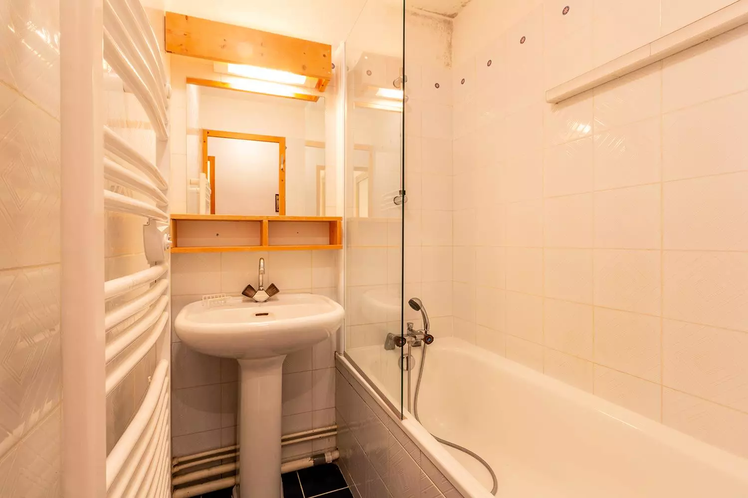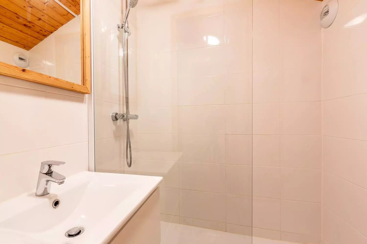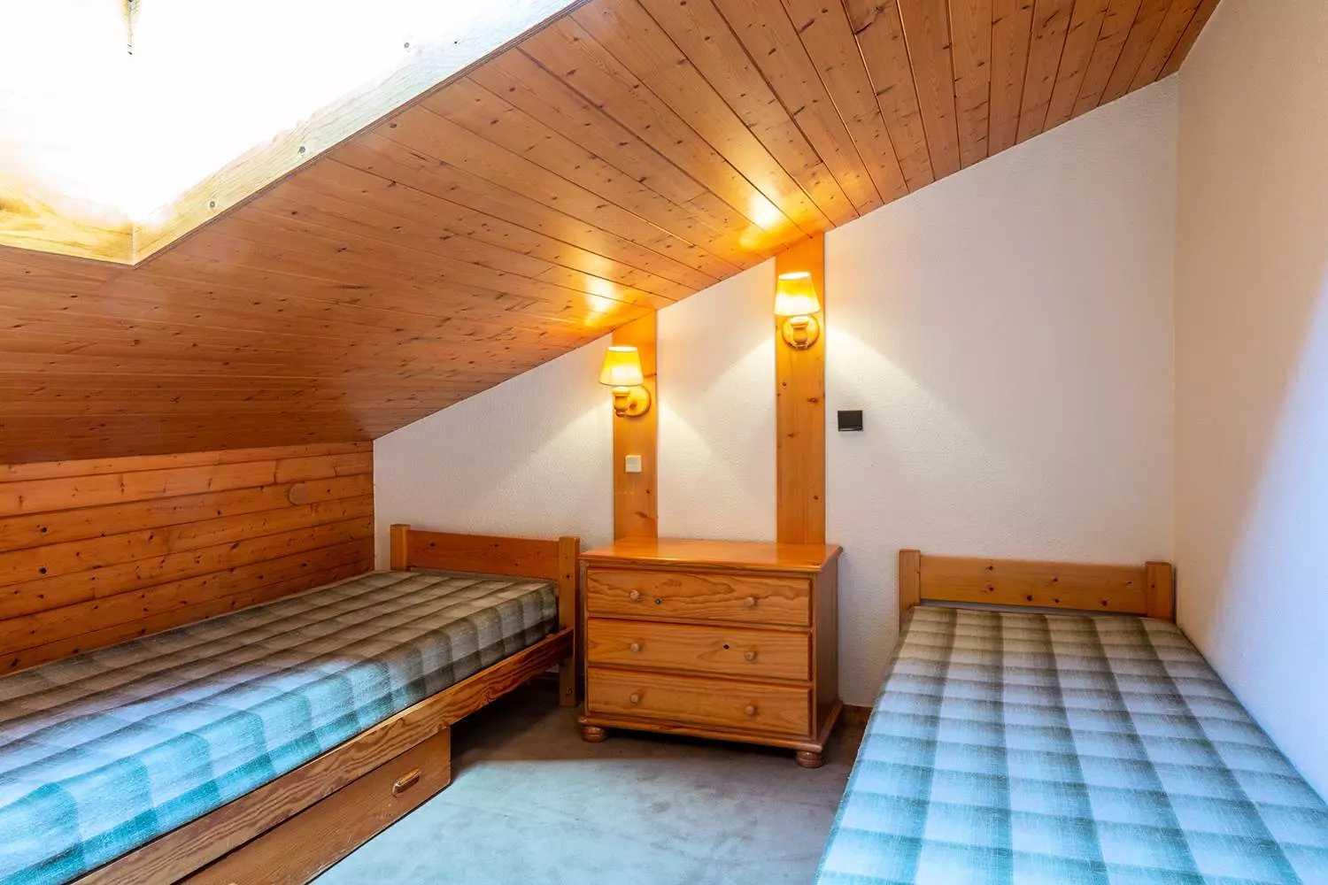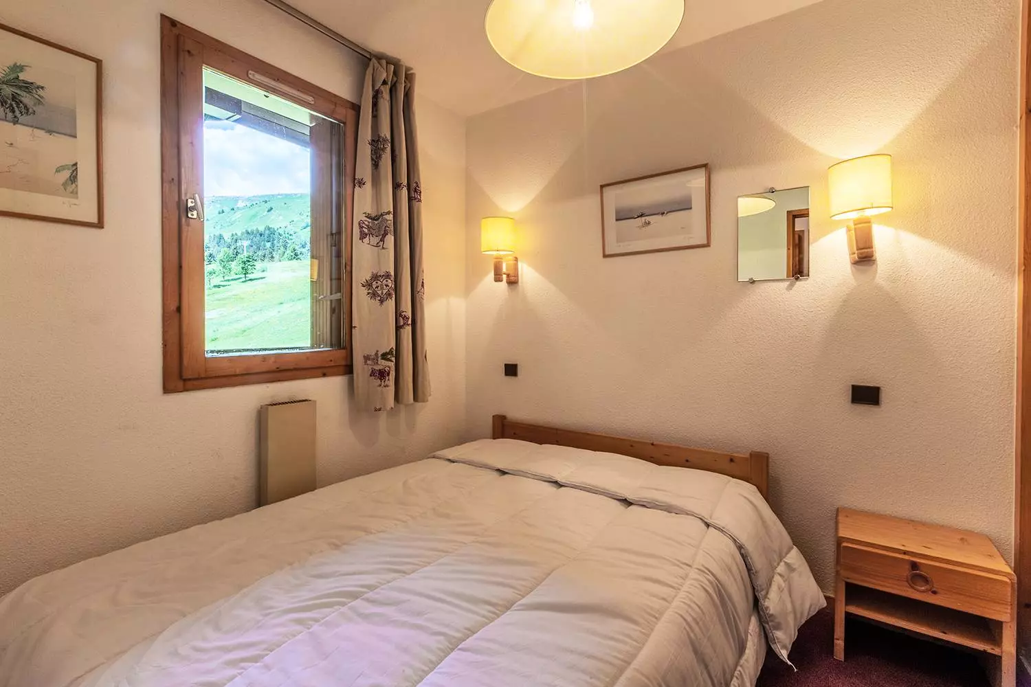 Séjour avec une banquette lit simple (80x190), un canapé et une télévision. Chambre avec un lit double (140x190). Une salle de bains et un wc séparé. La cuisine est rénovée et entièrement équipée (plaques vitrocéramiques, four, micro ondes, lave vaisselle, bouilloire, grille-pain, cafetière et réfrigérateur). Sur la mezzanine, se trouve deux chambres mansardées dont une avec trois lits simples (80x190) et une avec un lit double (140x190). Une salle de douche avec wc. Balcon. Casier à ski et ascenseur dans la résidence. Animaux non admis. Appartement non fumeur. Etage -1. Départ skis aux pieds.