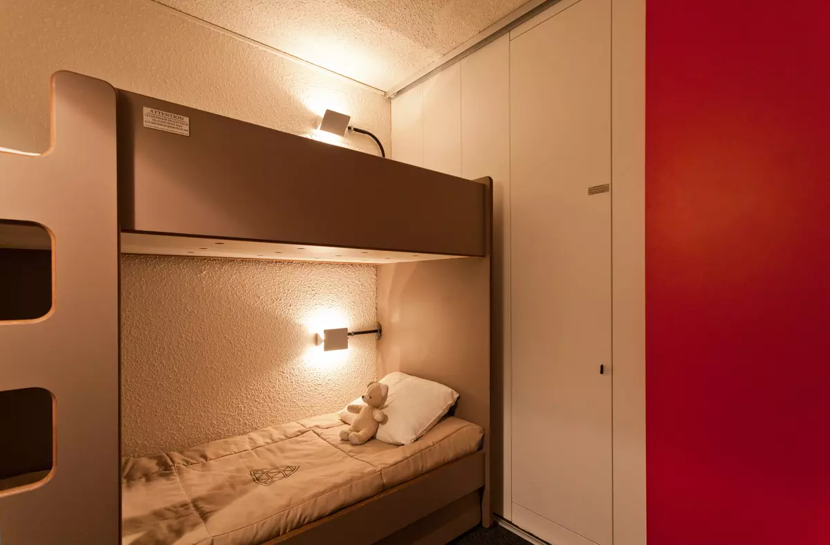 Studio composé d'une entrée avec 2 lits superposés (le couchage en hauteur ne convient pas aux enfants de -6 ans) + 1 lit gigogne