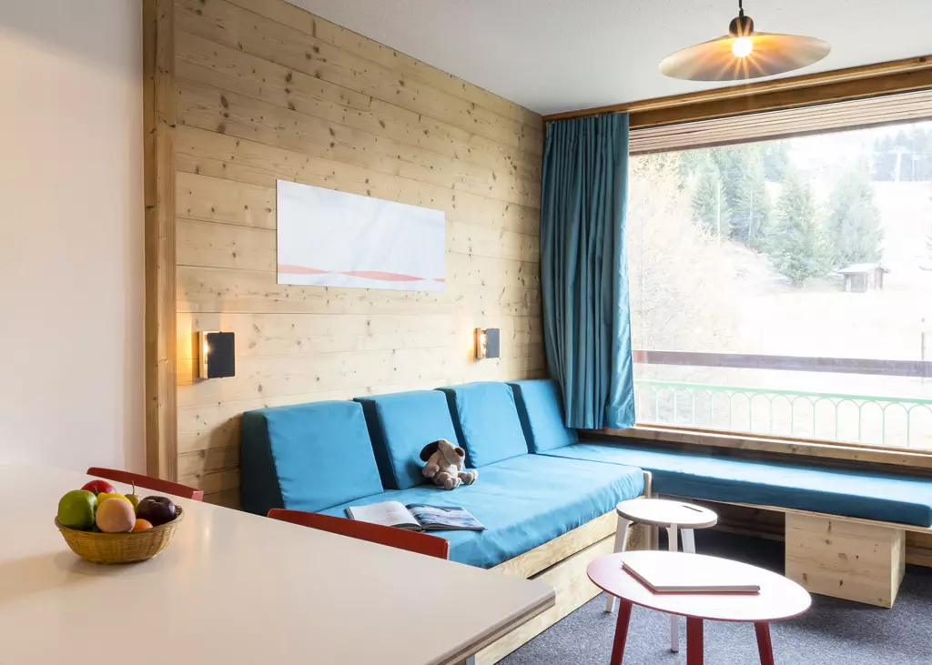 Studio coin montagne, rénové bois en 2012, de 27m² pour 5 personnes, orienté Sud, au 11e étage de la résidence Lauzières du Charvet avec balcon, au pied des pistes et des commerces.