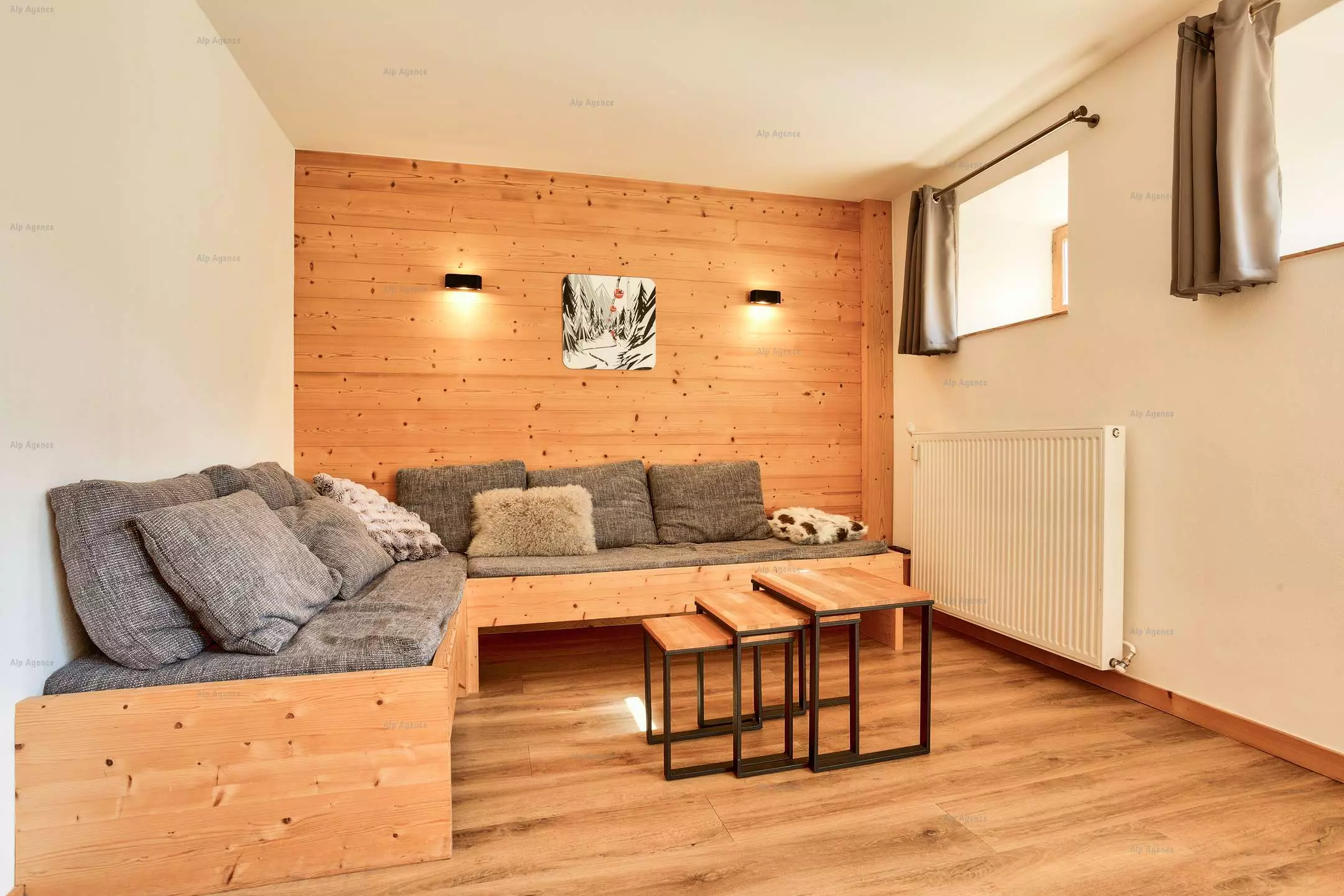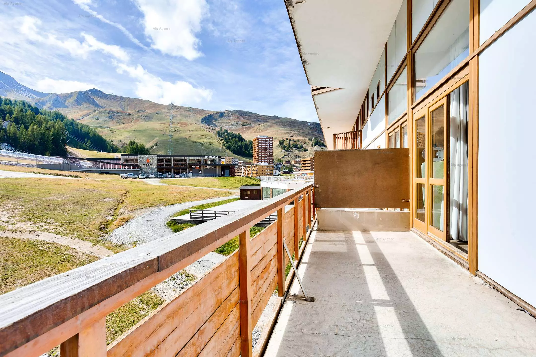 Appt en Duplex 9 pers, 63m² environ, séjour orienté Sud avec balcon/terrasse vue sur les pistes - 1er étage avec ascenseur - Niveau 1 : cuisine : 4 plaques vitrocéramiques, réfrigérateur/congélateur, four traditionnel, micro-ondes, lave-vaisselle -cafetière à filtre - Séjour : coin repas, 1 banquette d'angle (2 lits 1 pers pers 90cm), Télévision. Salle de bains avec douche et wc séparés - A l'étage niveau 2 : Chambre 1 (à gauche) : 2 lits 1 pers, Télévision - Chambre 2 : 1 lit 2 pers 140cm fenêtre donnant sur le salon, TV - Chambre 3/ Cabine (sans fenêtre) : 2 lits superposés 80cm et 1 lit 1p 80cm - Salle de bains : baignoire WC inclus - lave-linge - Literie : couvertures dont 1 double. Sol : plastique - Casier à skis n° 132 au rdc côté UCPA. Appartement de bon confort bénéficiant d'une très belle vue sur les pistes -ANIMAUX NON ADMIS et APPT NON FUMEUR - Ménage de fin de séjour, draps, serviettes et forfaits ski sont en option - Résidence située au pied des pistes, reliée aux commerces par galerie.