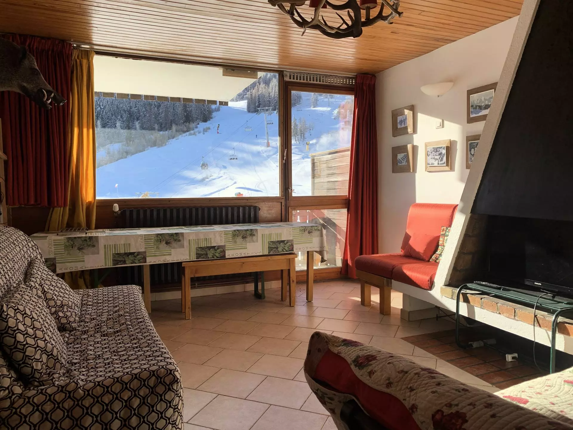 Appartement de type 2 pièces pour 4/6 personnes, 42m² environ. Situé au 2ème étage sans ascenseur, escalier B, sur pistes. Exposé Sud avec balcon et vue sur les pistes et le Pain de Sucre.