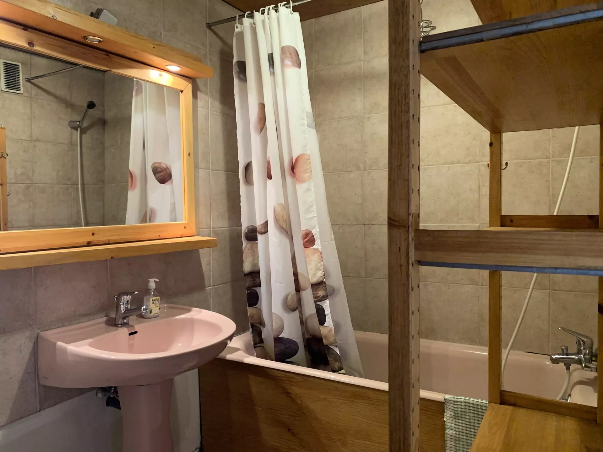* Salle de bains avec baignoire, sèche-cheveux ;
