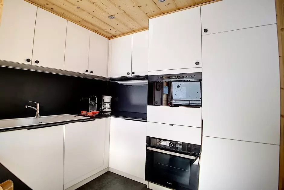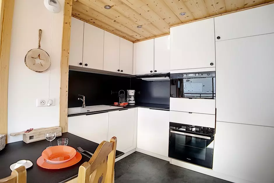 Cuisine équipée de 4 plaques induction, four traditionnel, grand réfrigérateur, micro-ondes, lave-vaisselle, bouilloire, grille-pain, cafetière classique et Nespresso.