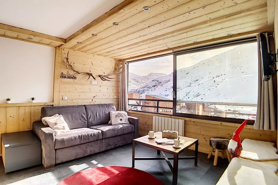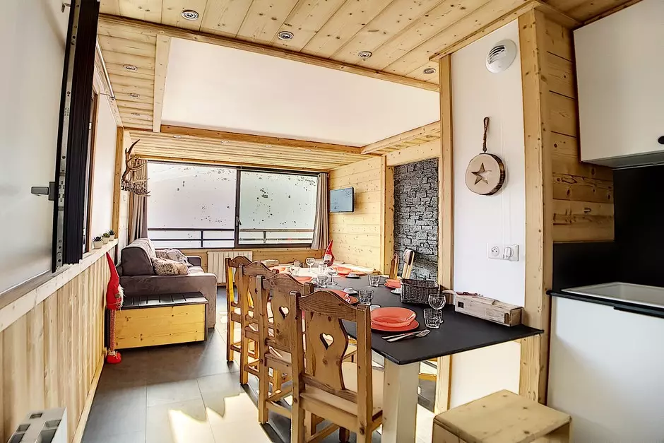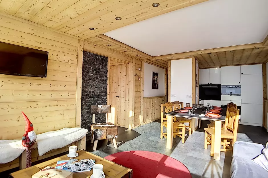 Appartement très agréable de 3 pièces avec cabine offrant une belle superficie de 61 m² pour 8/10 personnes. Entièrement rénové avec cachet dans un style montagne cosy.