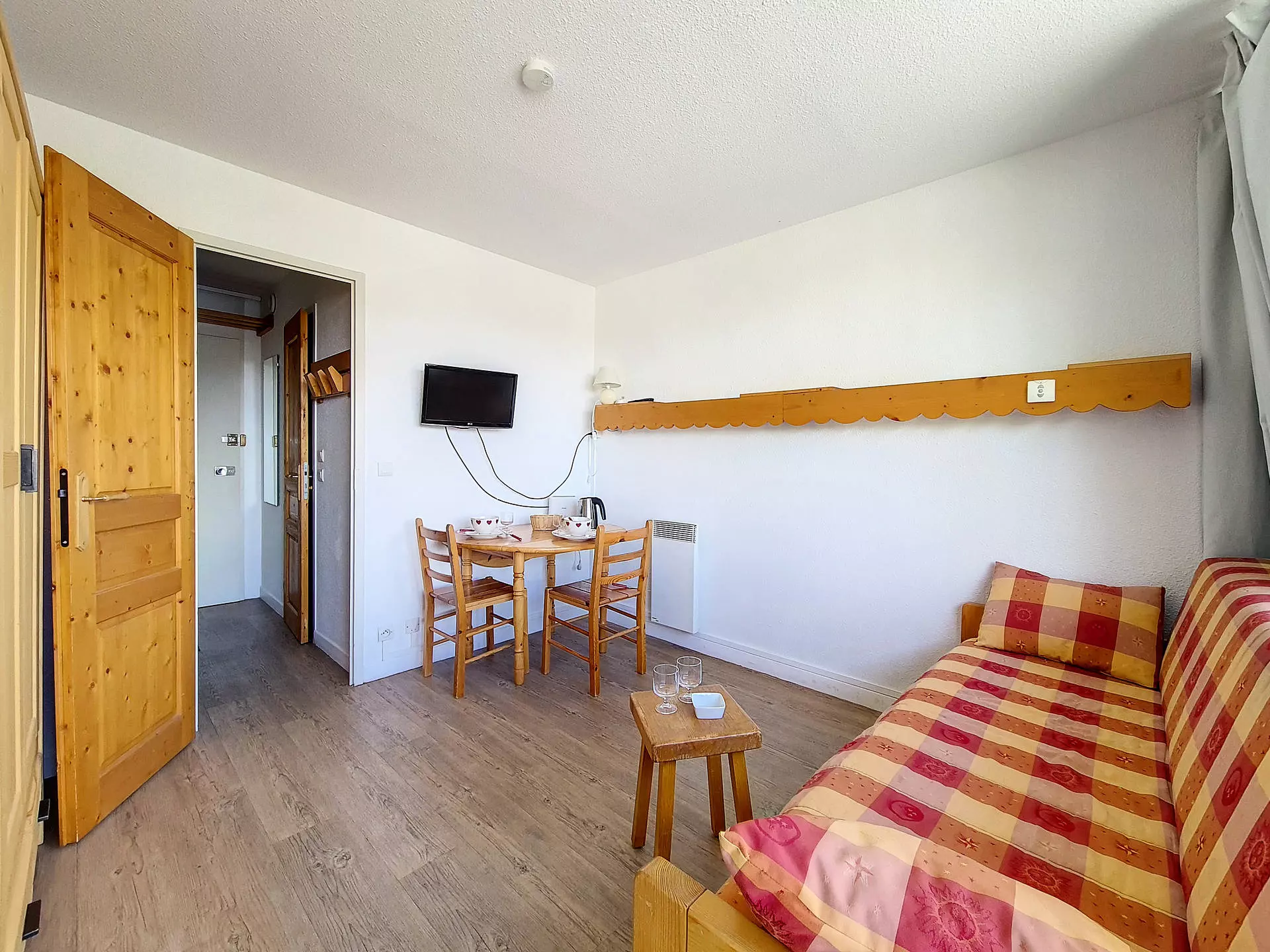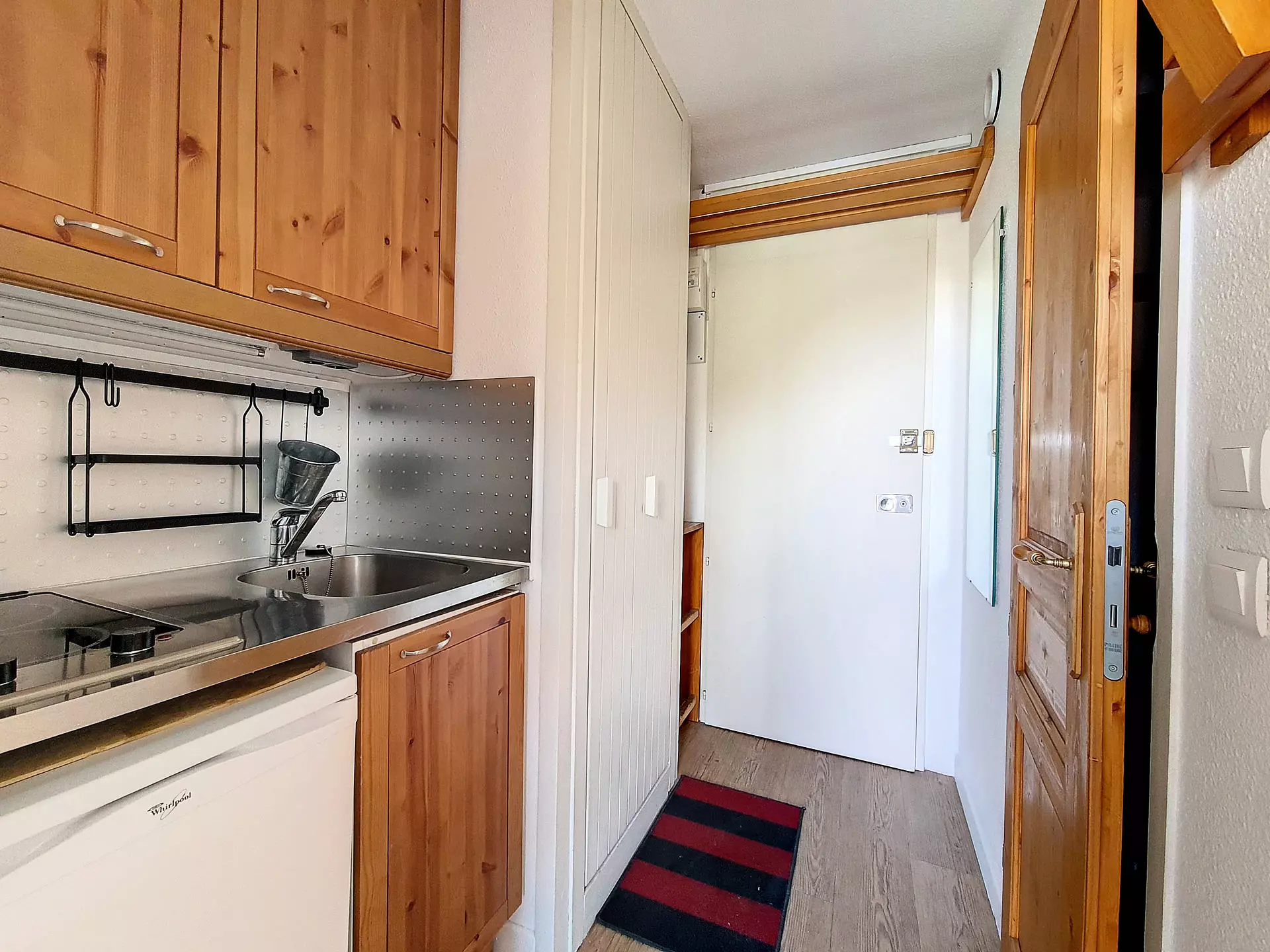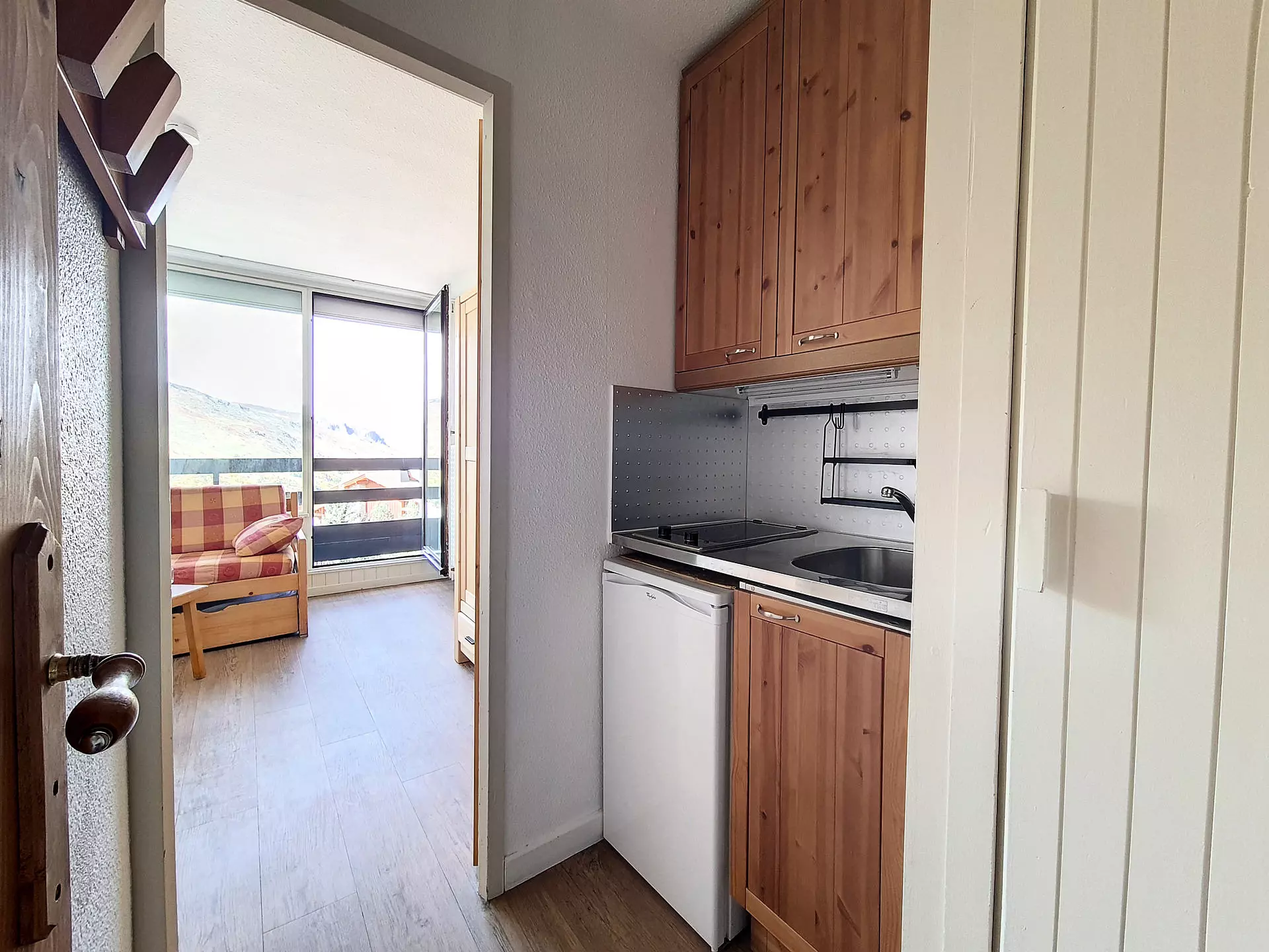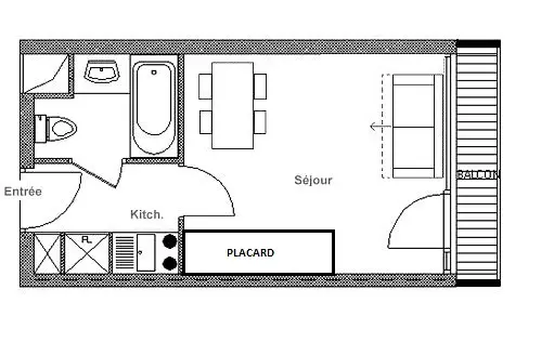 Joli studio de 17 m² pour 2 personnes. Il a un balcon OUEST et il est situé au 1er étage (rez-de-chaussée dans l'ascenseur) de l'immeuble.