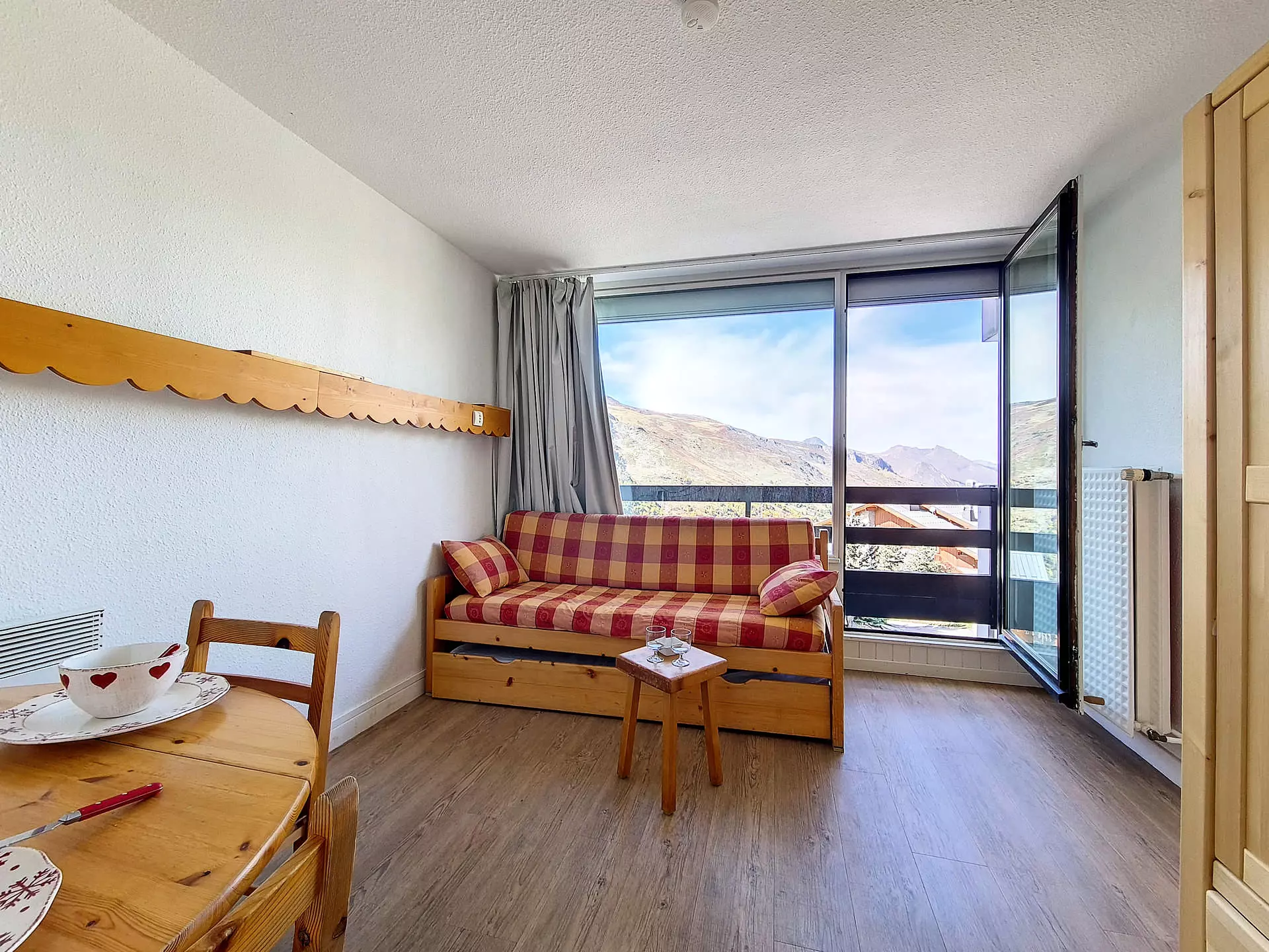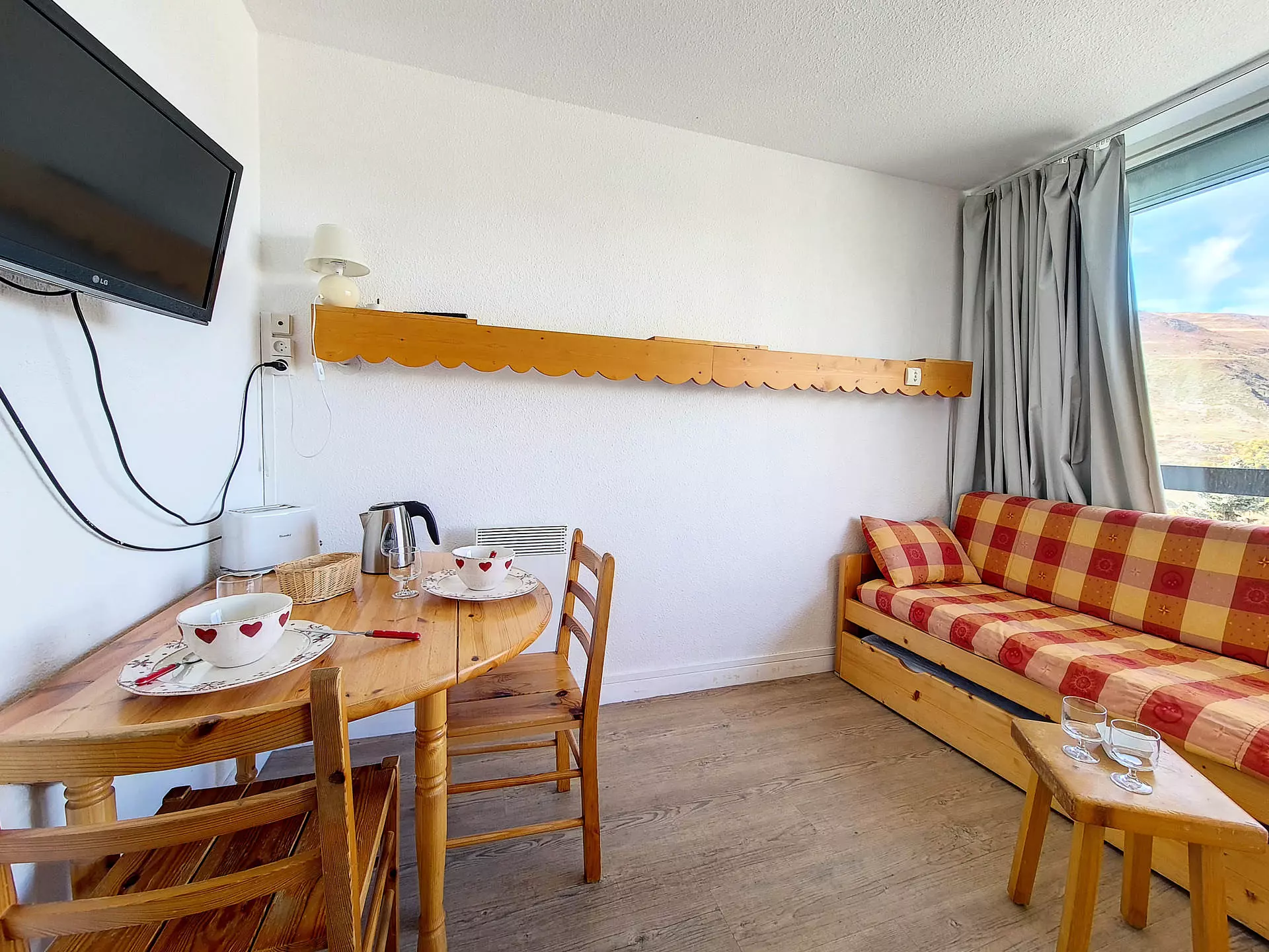 Séjour : 1 lit simple + 1 lit gigogne relevable.