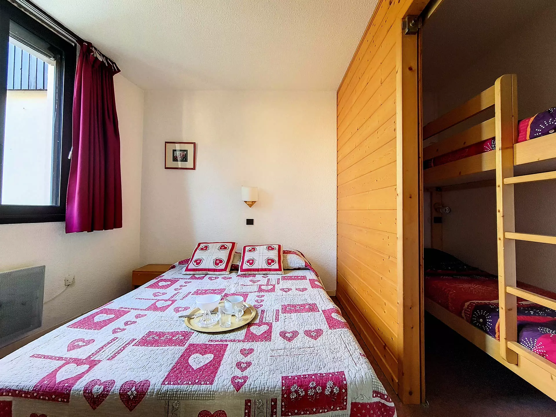 Coin montagne (séparé de la chambre par cloison coulissante) : 2 lits simples superposés 1 personne.