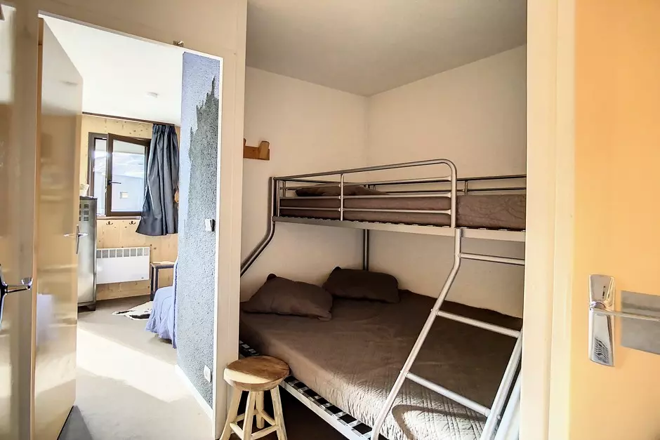 Coin montagne (dans l'entrée, séparé du séjour par une porte) : 2 lits superposés : 1 personne au dessus et 1 lit 2 personnes au dessous.