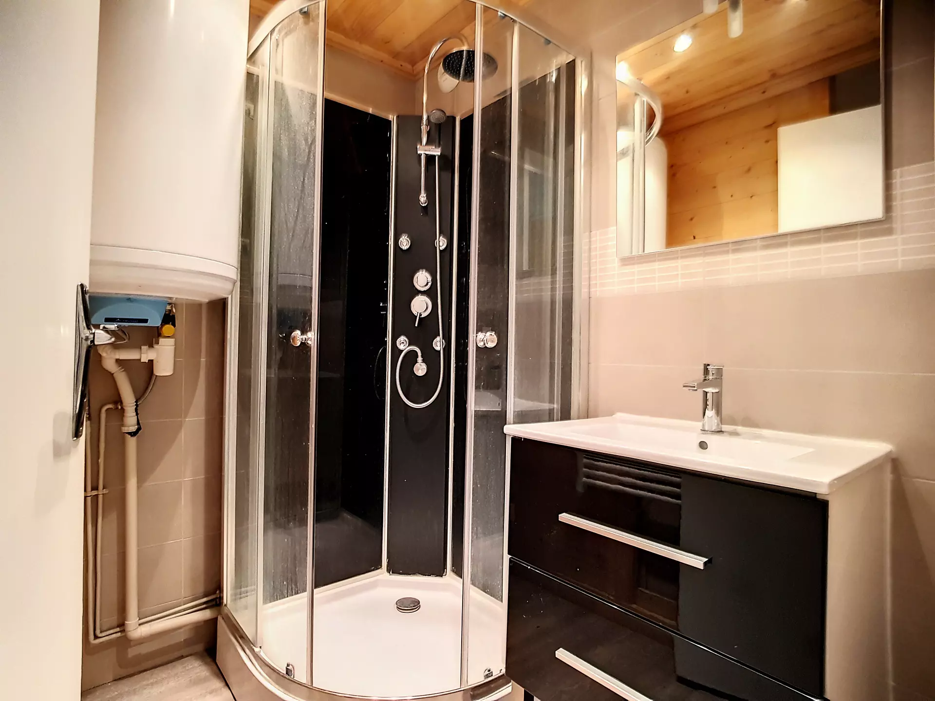 Salle d'eau rénové avec douche.
