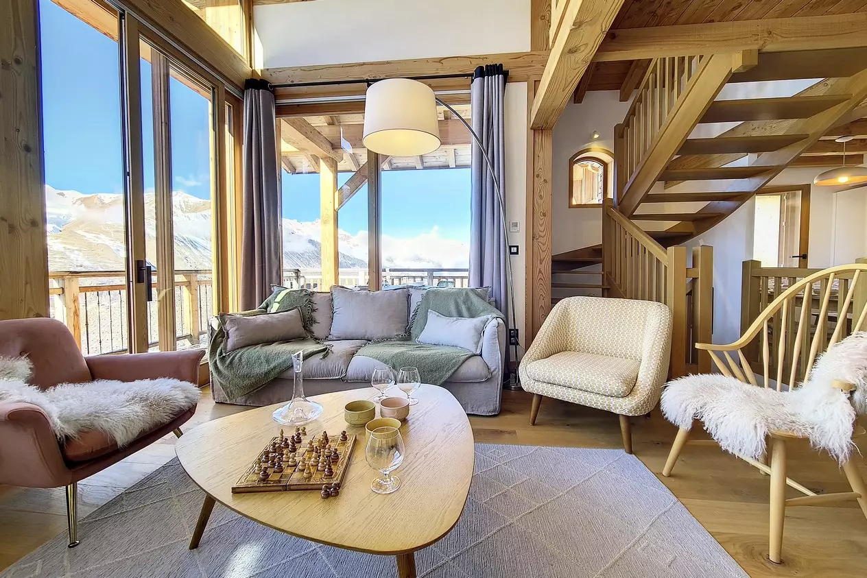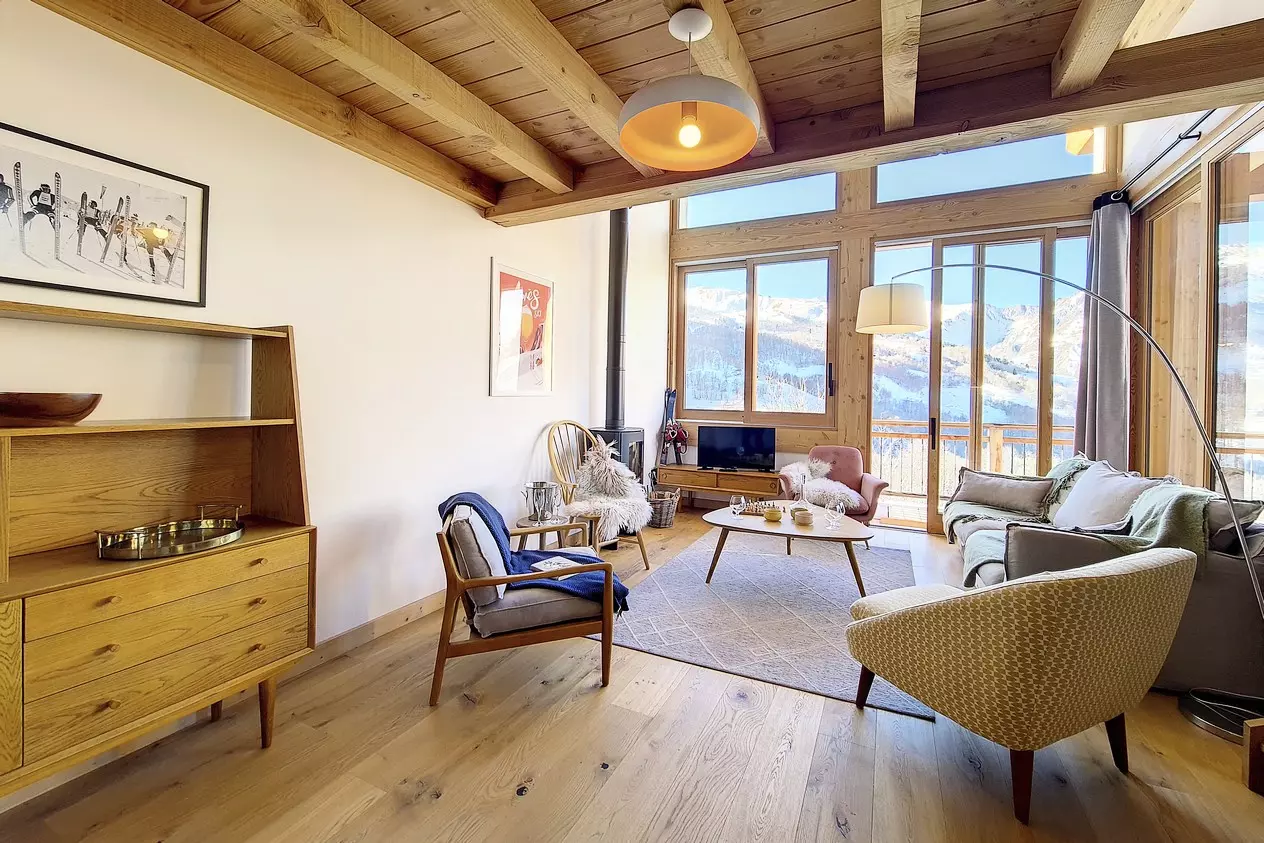 Douceur pastel autour du poêle à bois. Le Chalet CACHETTE est idéal pour vos retrouvailles en famille (90m² pour 8 personnes). A juste 2 minutes à pied des pistes (le skiroom donne directement sur la piste), ce chalet ensoleillé offre tout le standing moderne en épousant l'ambiance cocoon de la montagne.
