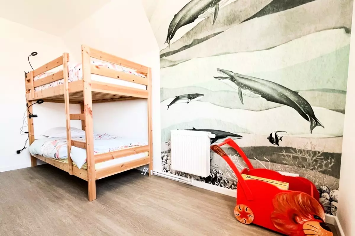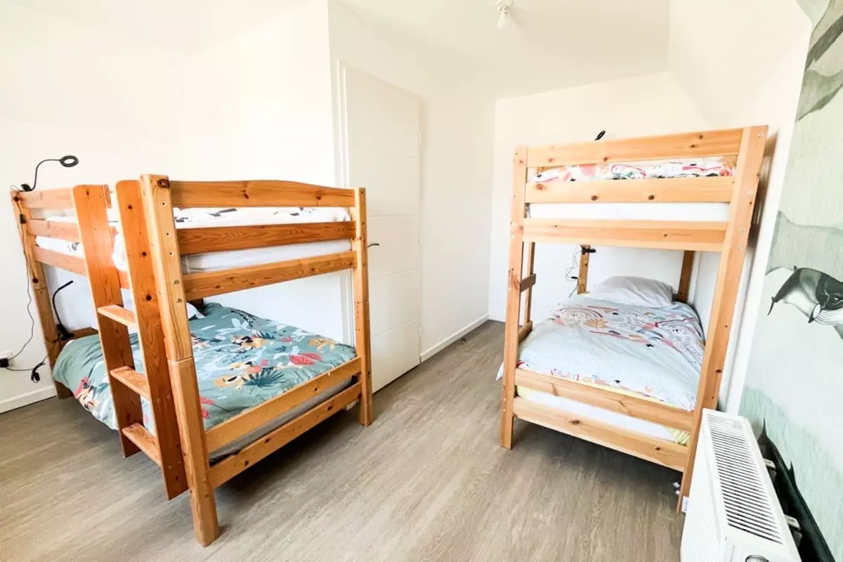 Trois chambres avec deux lits doubles, deux lits superposés, ainsi qu'un espace de rangement pour les vêtements dans chacune des chambres adultes ;
