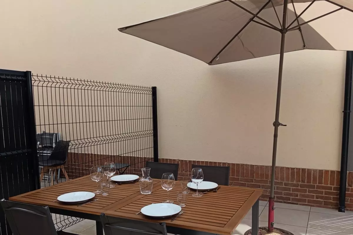 - Une terrasse meublée non fumeurs pour vos déjeuners en extérieur, équipée d'une plancha pour vos grillades ;