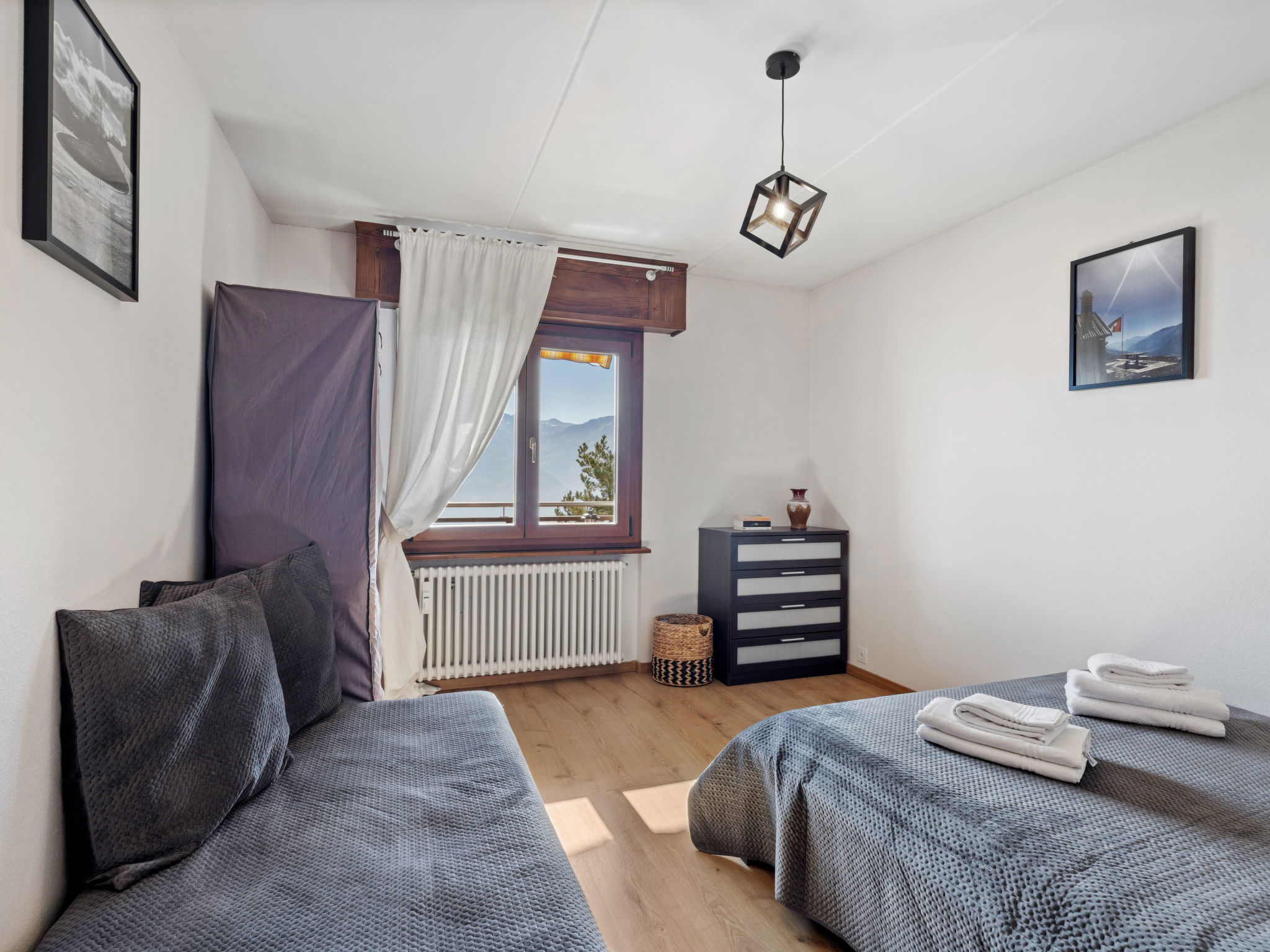 Résidence accueillante, confortable "Lisière-Sud". Dans le bas de la station de Montana, dans le quartier de La Combaz, à 1.7 km du centre, à 2.3 km du lac, à 1.2 km du domaine skiable, sur une route principale, orientée sud. Infrastructures de la résidence: ascenseur, local pour les skis, chauffage central, lave-linge, sèche-linge (en commun, en sus). Place de parking (nombre de places limité) près de la maison. Magasins 1.6 km, supermarché 1.7 km, restaurant 1.6 km, arrêt de bus "Comba" 50 m, gare ferroviaire "Funiculaire Montana Gare" 1.2 km, baignade en lac "Moubra" 2.7 km, lac Grenon 2.3 km. Terrain de golf (18 trous) 3.4 km, remontées mécaniques 1.2 km. Patinoire 1.8 km. Veuillez noter: ski-bus gratuit.