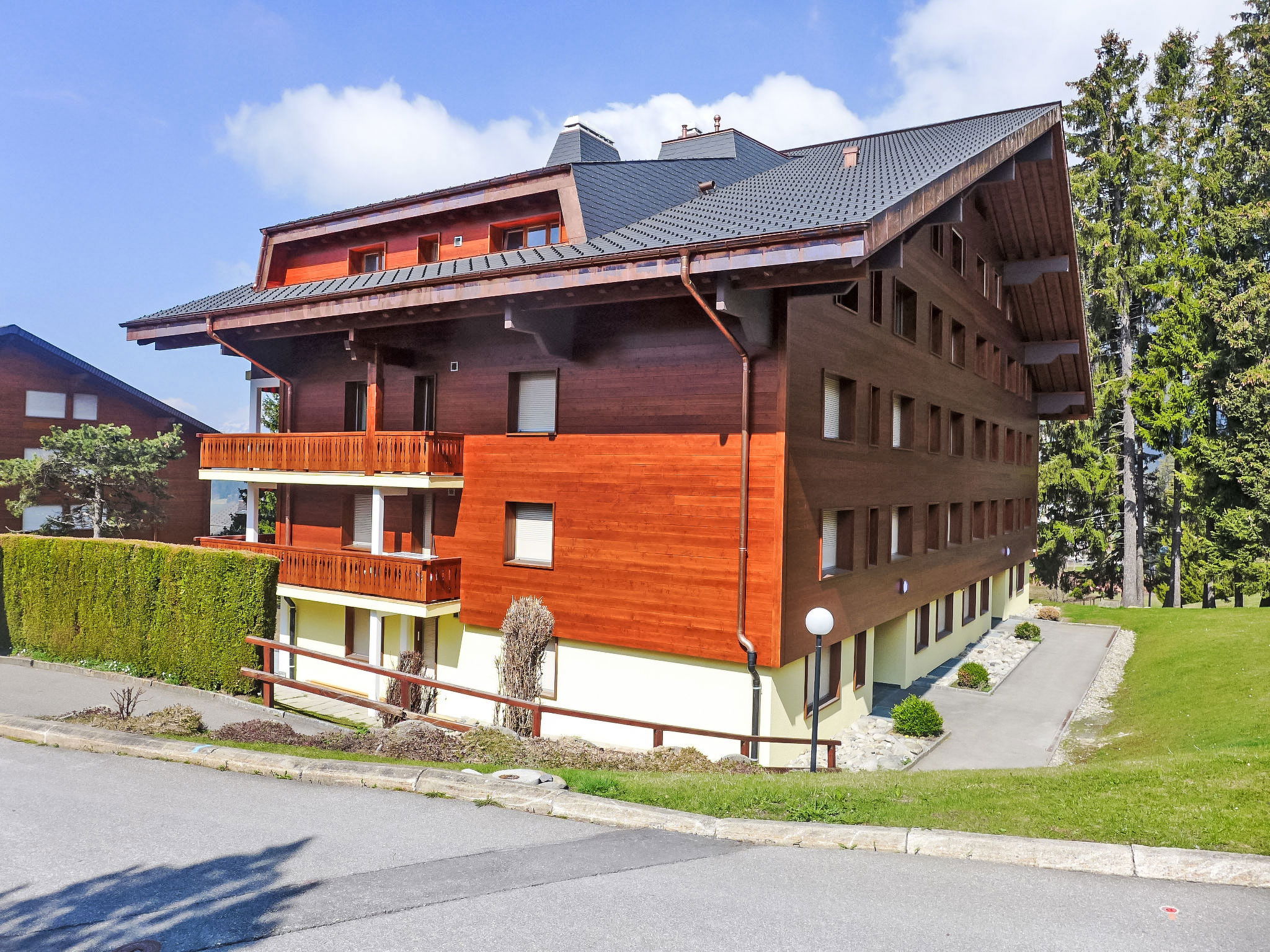 Roches Grises: Résidence "Hyacinthe", de 4 étages, rénovée en 2017. Dans le haut de la station de Villars, situation tranquille, ensoleillée, à 50 m du domaine skiable, orientée sud. En commun: terrain avec pelouse. Infrastructures de la Maison: ping-pong, ascenseur, local pour les skis, chauffage central, lave-linge (en commun, en sus), étendoir à linge. En hiver, merci de prévoir des chaînes. Parking public. Magasins 900 m, magasin d'alimentation, restaurant 700 m, boulangerie 800 m, centre à 12 minutes à pieds, arrêt de bus 1.5 km, gare ferroviaire "Roches Grises" 250 m, piscine couverte 1.7 km, centre thermal "Lavey-les-bains" 19 km. Port plaisance 25 km, terrain de golf (18 trous) 7 km, tennis couvert 400 m, centre sportif 400 m, train de montagne 250 m, télécabine 2 km. Arrêt du ski-bus 1.4 km, école de ski 1.4 km, école de ski d'enfants 400 m, patinoire 1.7 km, jeux pour enfants 1.6 km. Service de navette gratuite desservant le domaine skiable Villars. Veuillez noter: D’autres appartements sont également proposés à la location dans cette maison de vacances.