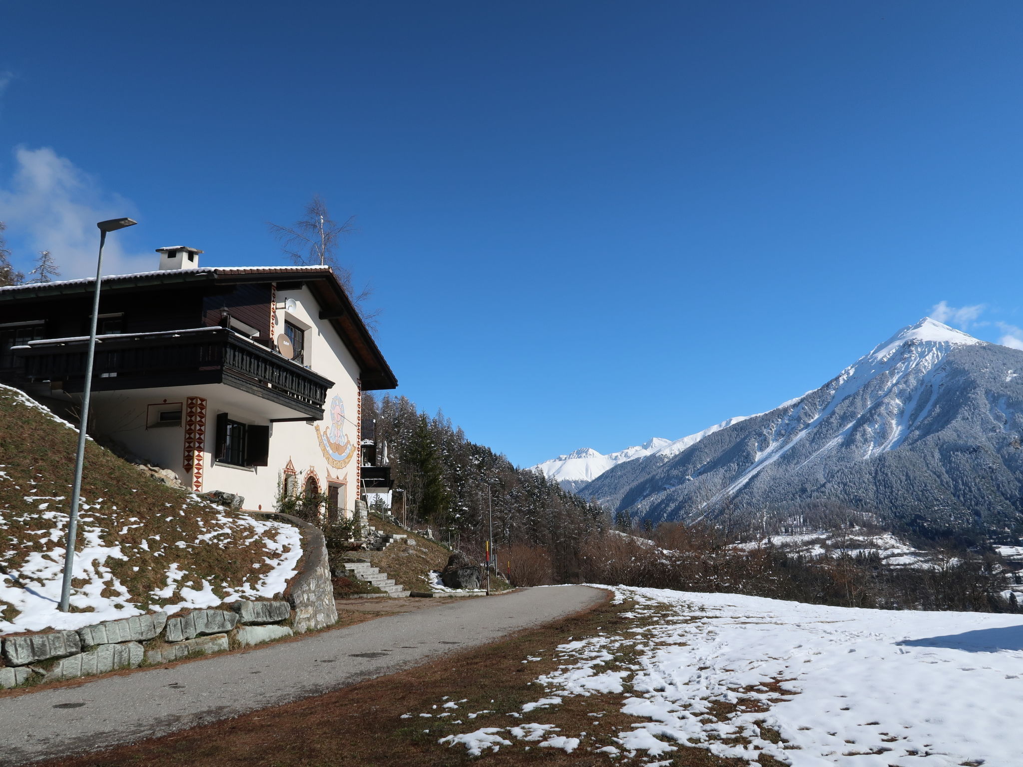 Chalet accueillant, rustique "Tgaplotta", 1'160 m au dessus du niveau de la mer, de 3 étages, année de construction 1980, renové en 2010. En bordure de la localité, à 500 m du centre, situation tranquille, ensoleillée, à 14 km du domaine skiable, dans une impasse, dans la verdure, orientée sud. A usage privé: terrain, jardin 300 m2. Barbecue. Infrastructures de la Maison: réduit pour bicyclettes, local pour les skis, chauffage central, lave-linge, sèche-linge, étendoir à linge. Accès en voiture jusqu'à la maison (route de montagne). En hiver 4x4 recommandé. Place de parking près de la maison, garage individuel. Borne de recharge électrique. Magasins 500 m, magasin d'alimentation 500 m, restaurant 700 m, arrêt de bus 500 m, gare ferroviaire "Alvaneu" 2 km. Terrain de golf (18 trous) 3 km, remontées mécaniques 14 km. Arrêt du ski-bus 500 m, ski de fond 3 km, jeux pour enfants 700 m. Les domaines skiables de renommée sont facilement accessibles: Lenzerheide 14 km, Davos 23 km. Veuillez noter: voiture recommandée.