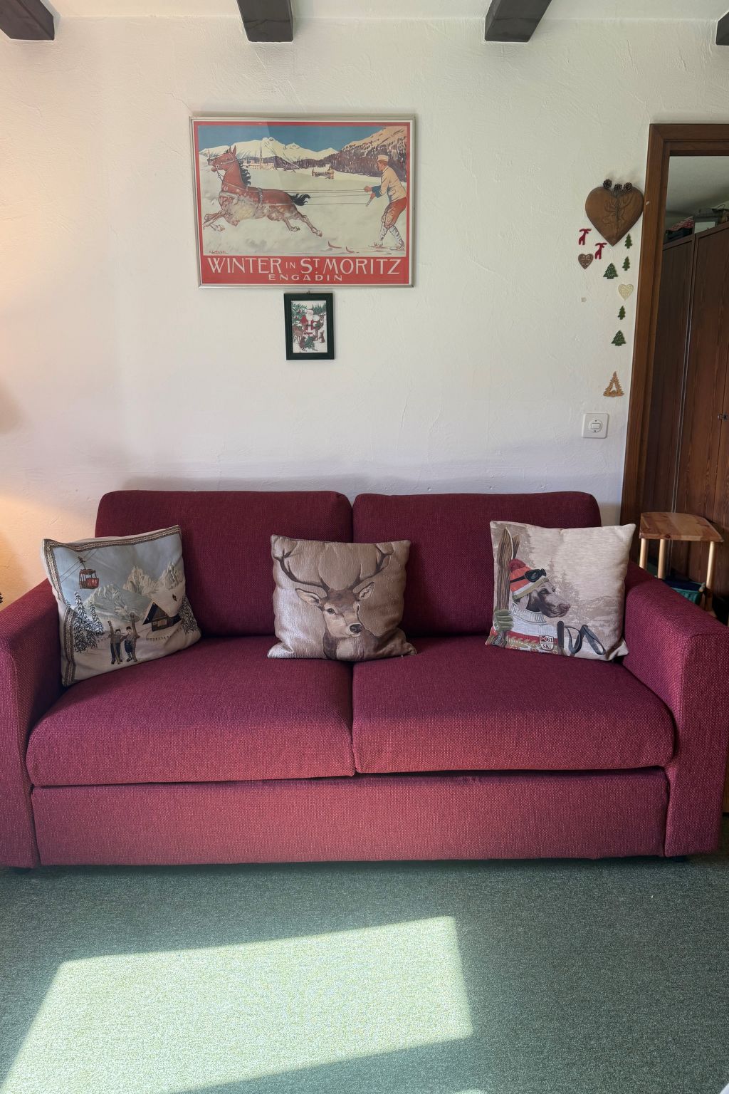 Petite résidence accueillante "Residenza Chesa Margun", 1'815 m au dessus du niveau de la mer, environnée par les arbres et prés. 7 maisons dans la résidence. Dans le quartier de Surlej, situation tranquille, ensoleillée, surélevée sur un versant, à 5 m de la forêt, à 1 km du lac, à 200 m du domaine skiable, dans une impasse, orientée sud. En commun: pré. Espace de jeux pour les enfants (toboggan, balançoire). Infrastructures de la résidence: réception, restaurant, bar, Connexion WIFI, ascenseur, réduit pour bicyclettes, local pour les skis, chauffage central, lave-linge (en sus), sèche-linge (en commun, en sus). Service boulangerie. Accès en voiture jusqu'à la maison. En hiver 4x4 recommandé. Garage en commun. Dimension: hauteur 203 cm. Borne de recharge électrique. Magasins 2 km, boulangerie 250 m, location de bicyclettes 100 m, arrêt de bus "Surlej Foppas" 210 m, centre thermal "Samedan" 14 km. Terrain de golf (8 trous) 7 km, ecole de surf 3 km, tennis 3 km, centre sportif 3 km, chemins de randonnées pédestres depuis la maison 100 m, téléphérique 500 m, téléski, télésiège 200 m, location de ski 100 m. Arrêt du ski-bus 20 m, école de ski, école de ski d'enfants, ski de fond 200 m, patinoire 3 km. Les domaines skiables de renommée sont facilement accessibles: Corvatsch 500 m. Les lacs connus sont facilement accessibles: Silvaplanasee 1 km. Région de randonnées: Panoramaweg 1 km, Via Engiadina 1 km. Veuillez noter: possibilité de pêche (autorisation nécessaire). Ski-bus gratuit. Service de navette gratuite desservant le domaine skiable Silvaplana-Surlej-Corvatsch Bahn. Veuillez noter: D’autres appartements sont également proposés à la location dans cette maison de vacances. La propriété référencée CH7513.600 est située sur le même terrain. Toutes les maisons/appartements sont aménagés individuellement. La résidence se situe à environ 100m sous le train de Corvatsch. Les appartements côté Sud ont la vue sur les montagnes, les appartements côté Nord ont la vue sur la forêt. Salle de jeux avec différents jeux pour les enfants de différents âges. Vous avez la possibilité de louer l'appartement à partir de 3 jours (en dehors de la haute saison). Nous proposons : prix spécial pour le SPA à Samedan. Renseignements supplémentaires à la réception. Vendredi soir : ski pendant la Covratsch-Snownight (piste illuminée). Forfait (en sus) nécessaire. La maison dispose d'une station de chargement pour voitures électriques.