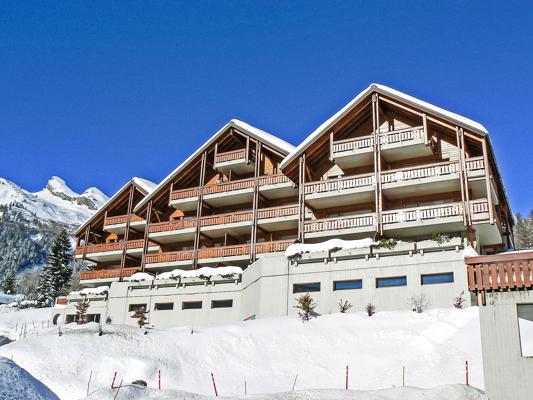 "Eaux-Vives 202", Appartement de 3 pièces 80 m2 sur 2 niveaux au 2ème étage, situation sud. Aménagement confortable et de bon goût: séjour/salle à manger 22 m2 avec baie vitrée orientée sud avec coin repas et TV (câblée) (écran plat), chaîne stéréo et DVD. Sortie sur le balcon. Cuisine ouverte (4 plaques de cuisson, four, lave-vaisselle, grille-pain, bouilloire électrique, micro-ondes, cafetière électrique, Capsules pour machine à café (Nespresso) (NON INCLUSES), appareil à raclette, service à fondue (fondue chinoise, fondue au fromage)). WC séparé. À l'étage supérieur: 1 chambre, mansardée avec 2 lits (90 cm, longueur 200 cm), lavabo et douche (privé). Sortie sur le balcon. 1 chambre avec 2 lits (90 cm, longueur 200 cm), radio. Sortie sur le balcon. Bain/WC. Meubles de terrasse, chaises longues (4), réduit. Superbe vue sur les montagnes et la vallée. A disposition: fer à repasser, chaise haute pour enfant, lit bébé jusqu'à 2 ans, sèche-cheveux. Internet (Connexion WIFI, gratuit). Garage No 202. Veuillez noter: logement non-fumeur. Maximum 1 animal/ chien de petite taille autorisé.