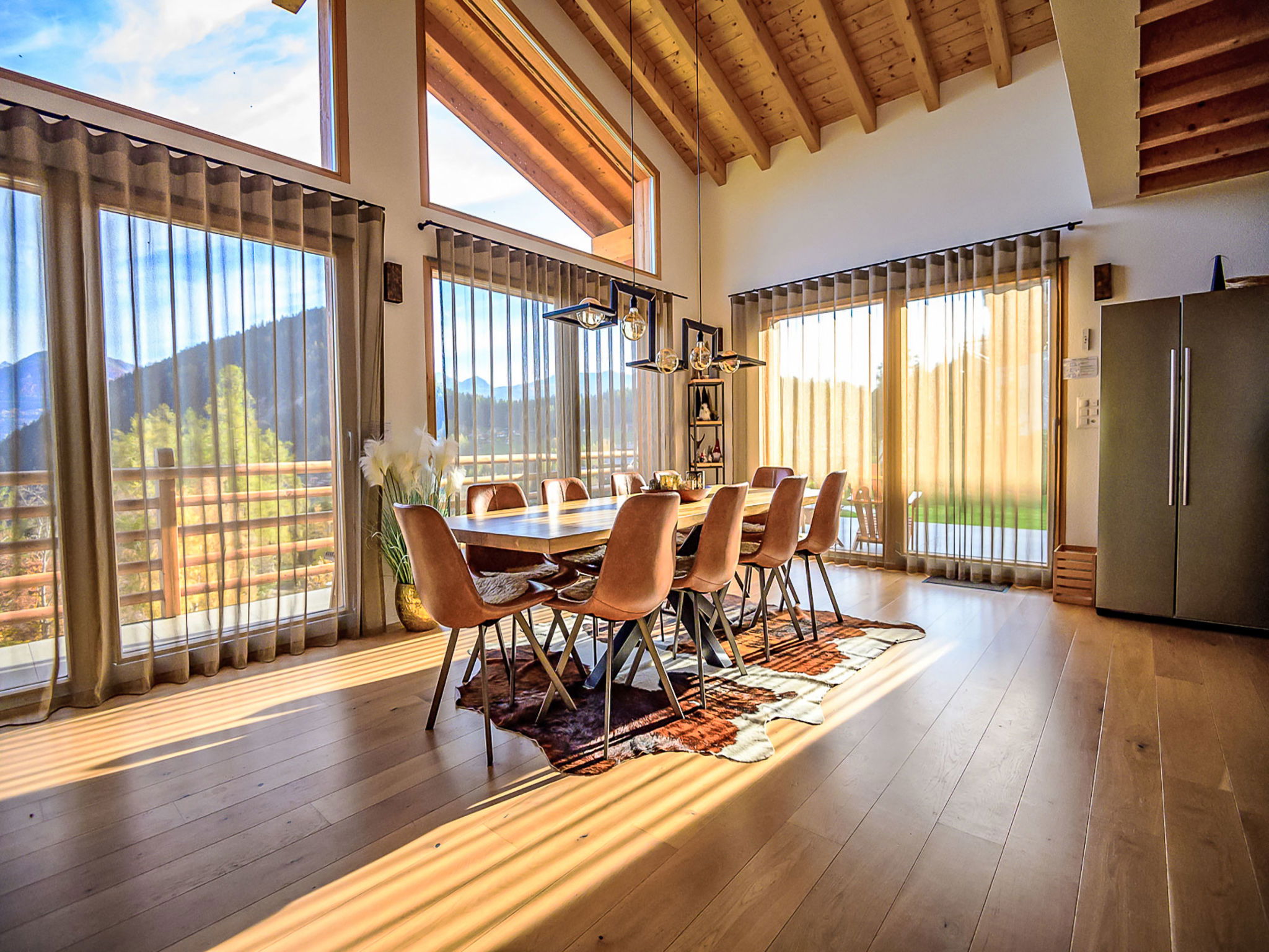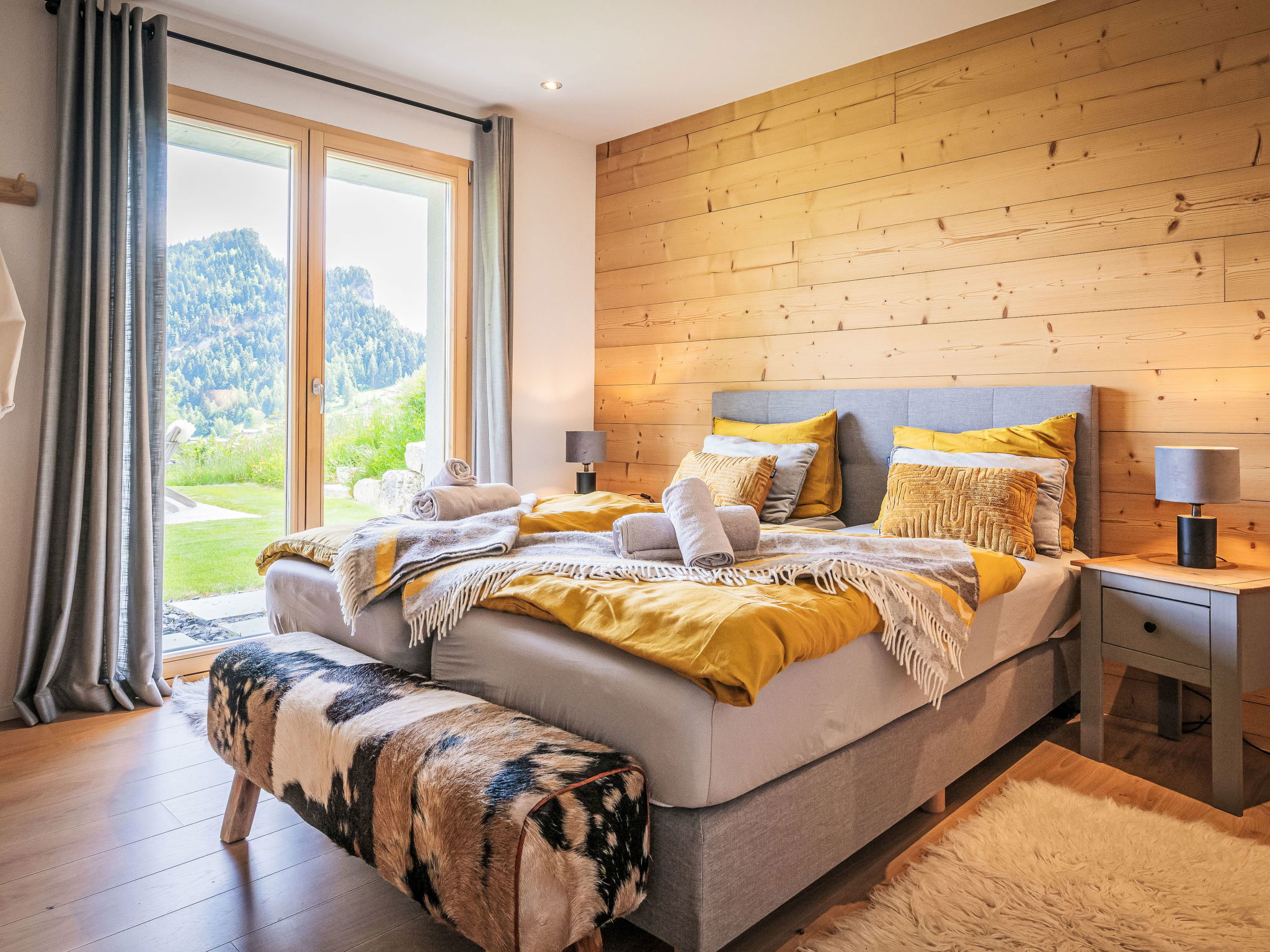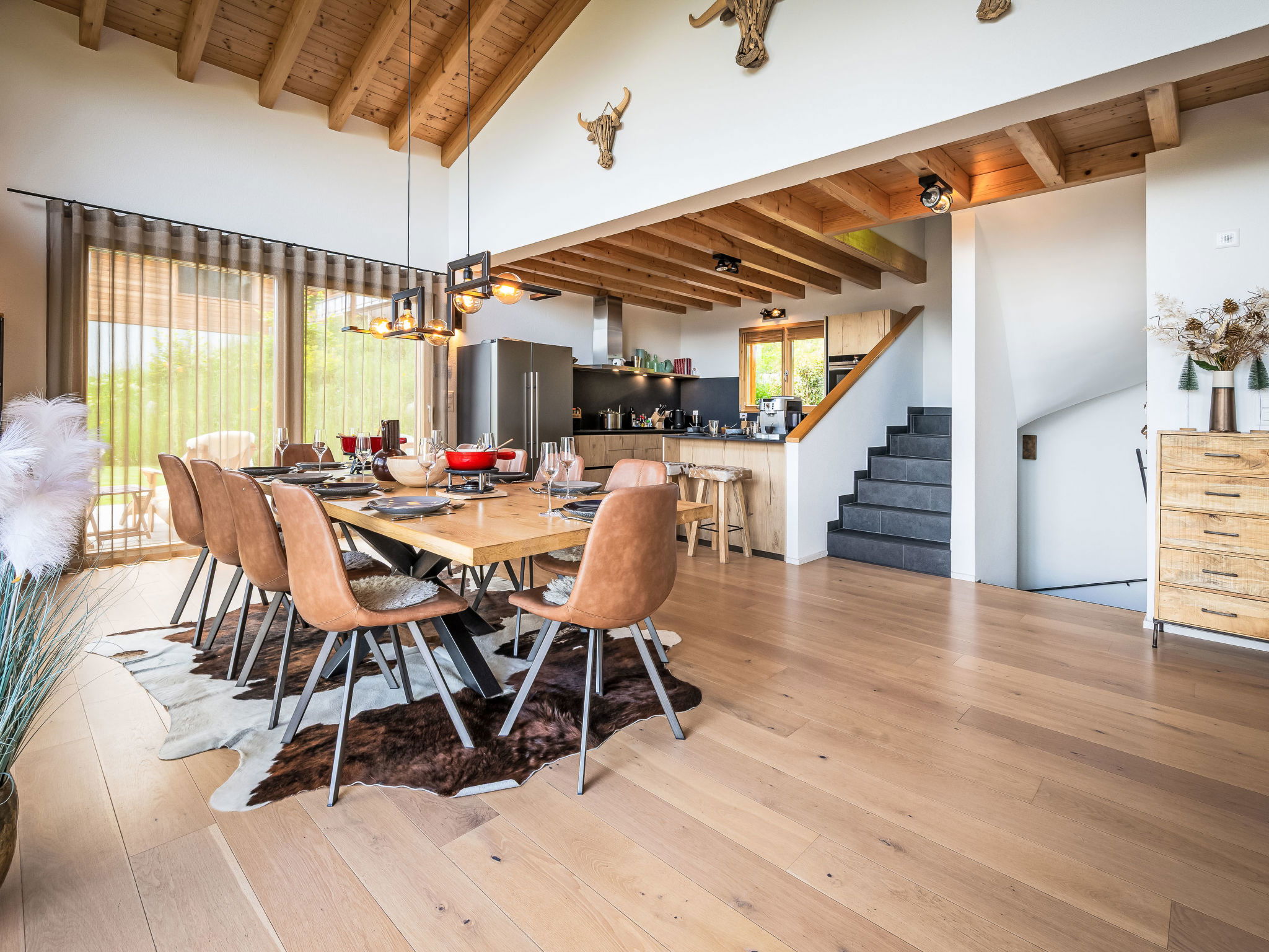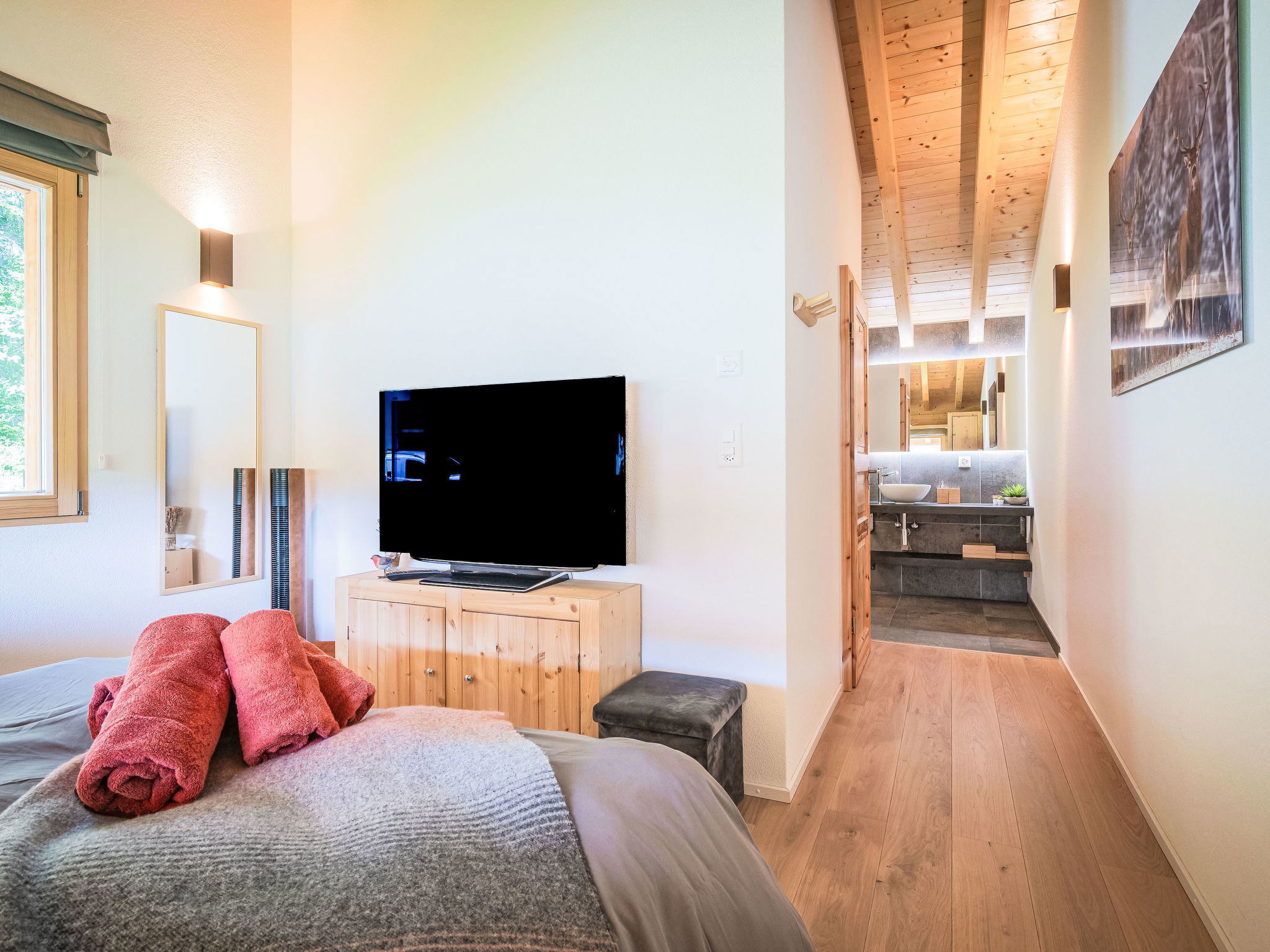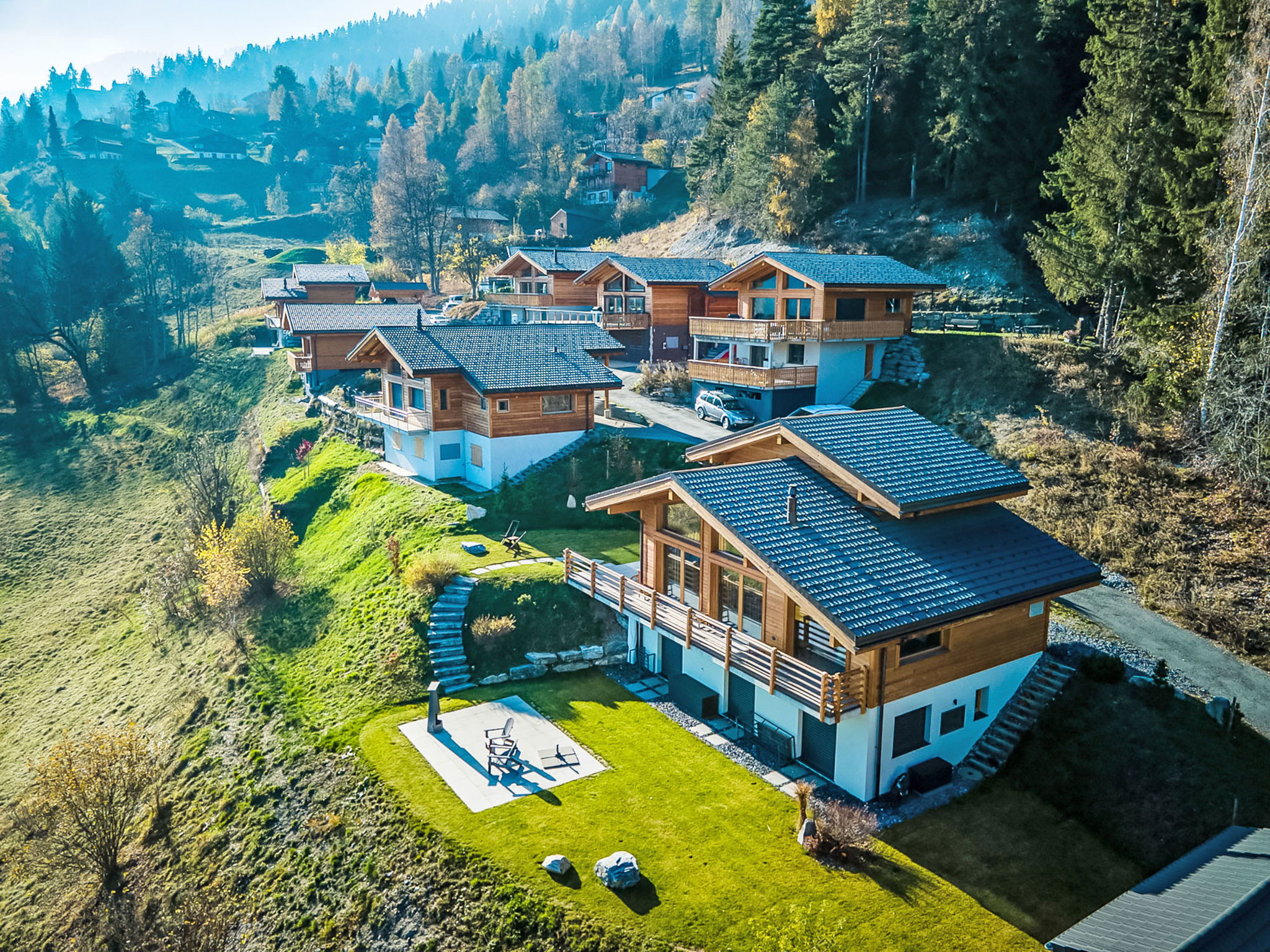 "La Luna", chalet 5 pièces 190 m2 sur 3 niveaux, situation sud. Logement idéal pour 8 adultes + 2 enfants. Spacieux et clair, aménagement très agréable et moderne: grand séjour/salle à manger avec poêle suédois et TV (câblée). Sortie sur le balcon. Cuisine ouverte (four, lave-vaisselle, 5 plaques à induction, grille-pain, bouilloire électrique, micro-ondes, congélateur, cafetière électrique, appareil à raclette, service à fondue (fondue au fromage)). Sortie sur la terrasse, orientée ouest. À l'étage inférieur: 1 chambre avec 1 grand-lit (160 cm, longueur 200 cm). Sortie sur la terrasse. 1 chambre avec 1 lit double (2 x 80 cm, longueur 200 cm). Sortie sur la terrasse. 1 chambre avec 1 x 2 lits superposés (90 cm, longueur 200 cm), 1 lit double (2 x 80 cm, longueur 200 cm). Sortie sur la terrasse. Douche/WC, WC séparé, bain/douche/WC. À l'étage supérieur: 1 grande chambre, mansardée avec 1 grand-lit (160 cm, longueur 200 cm), douche/WC et TV. Grand balcon, situation sud, grande terrasse, situation ouest, grande terrasse, situation sud. Meubles de terrasse, mobilier de balcon, barbecue, chaises longues. Très belle vue panoramique sur les montagnes, la vallée et les alentours. A disposition: lave-linge, sèche-linge, fer à repasser, chaise haute pour enfant, lit bébé jusqu'à 2 ans, sèche-cheveux. Internet (Connexion WIFI, gratuit). Place de parking (3 Voitures) à 10 m. Veuillez noter: maison non-fumeur. Maximum 1 animal/ chien autorisé.