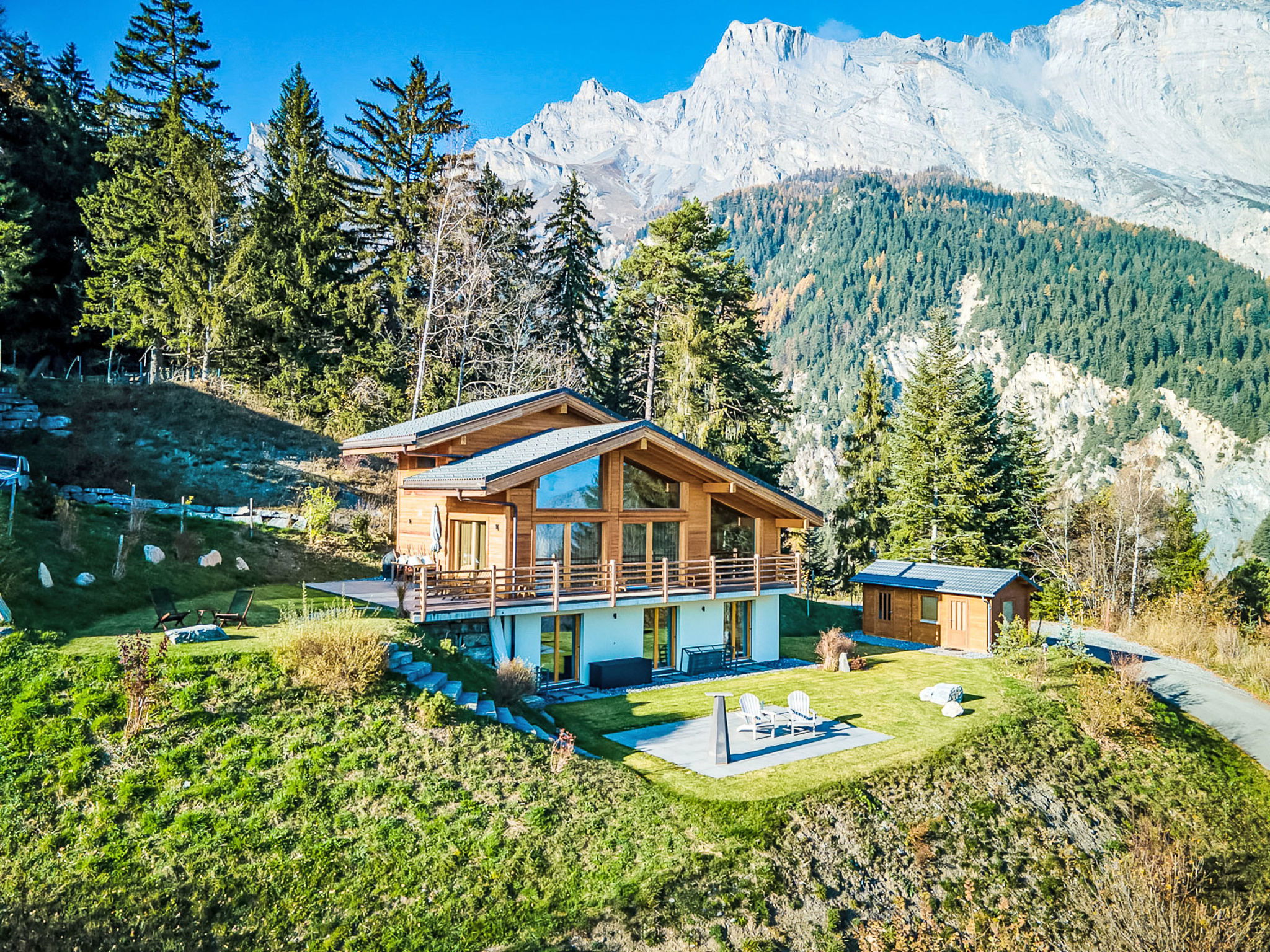 Beau chalet moderne, confortable "La Luna", de 3 étages, année de construction 2020. Dans le quartier de des Mayens de Chamoson, à 3.3 km du centre de d'Ovronnaz, situation tranquille, ensoleillée, zone avec peu de trafic, à 3.5 km du domaine skiable, orientée sud. A usage privé: jardin sur plusieurs niveaux entretenu 300 m2 avec pelouse. Infrastructures de la Maison: local pour les skis, chauffage central, appareil de séchage de chaussures à ski. Accès en voiture (chemin non goudronné). En hiver 4x4 recommandé. Place de parking (pour 3 voitures). Supermarché 3.3 km, restaurant 300 m, boulangerie 3.2 km, location de bicyclettes 3.2 km, arrêt de bus "Prili Plane" 300 m, gare ferroviaire "Riddes" 11 km, centre thermal "Les Bains d'Ovronnaz" 4 km. Télésiège 3.5 km, pistes de ski 3.5 km, location de ski 3.2 km. Arrêt du ski-bus 300 m, école de ski 3.2 km. Veuillez noter: voiture recommandée. Ski-bus gratuit.