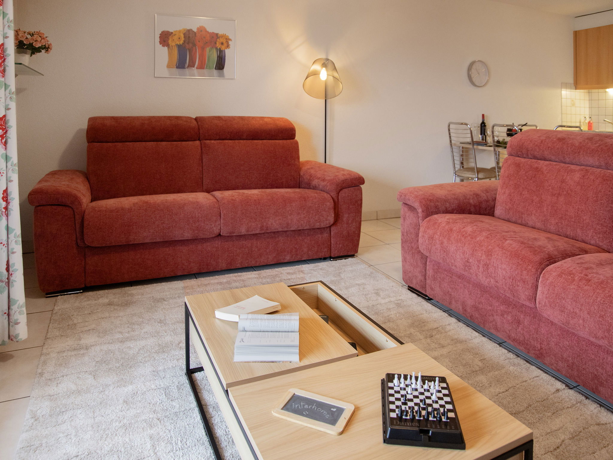 "Réze 5", Appartement de 2 pièces 60 m2 au 2ème étage, situation sud. Aménagement confortable et moderne: séjour/salle à manger 25 m2 avec 1 divan-lit double (1 x 140 cm, longueur 190 cm), cheminée, TV (câblée), écran plat, chaîne stéréo et DVD. Sortie sur le balcon. 1 chambre avec 2 lits (90 cm, longueur 200 cm), radio. Sortie sur le balcon. Coin cuisine (4 plaques de cuisson, four, lave-vaisselle, micro-ondes, cafetière électrique, Capsules pour machine à café (Nespresso) (NON INCLUSES)) avec table pour les repas. Bain/WC. Balcon 16 m2, situation sud. Meubles de terrasse, chaises longues (2). Belle vue sur les montagnes. A disposition: lit bébé jusqu'à 2 ans. Internet (Connexion WIFI, gratuit). Place de parking No 5. Veuillez noter: logement non-fumeur. Maximum 1 animal/ chien de petite taille autorisé.