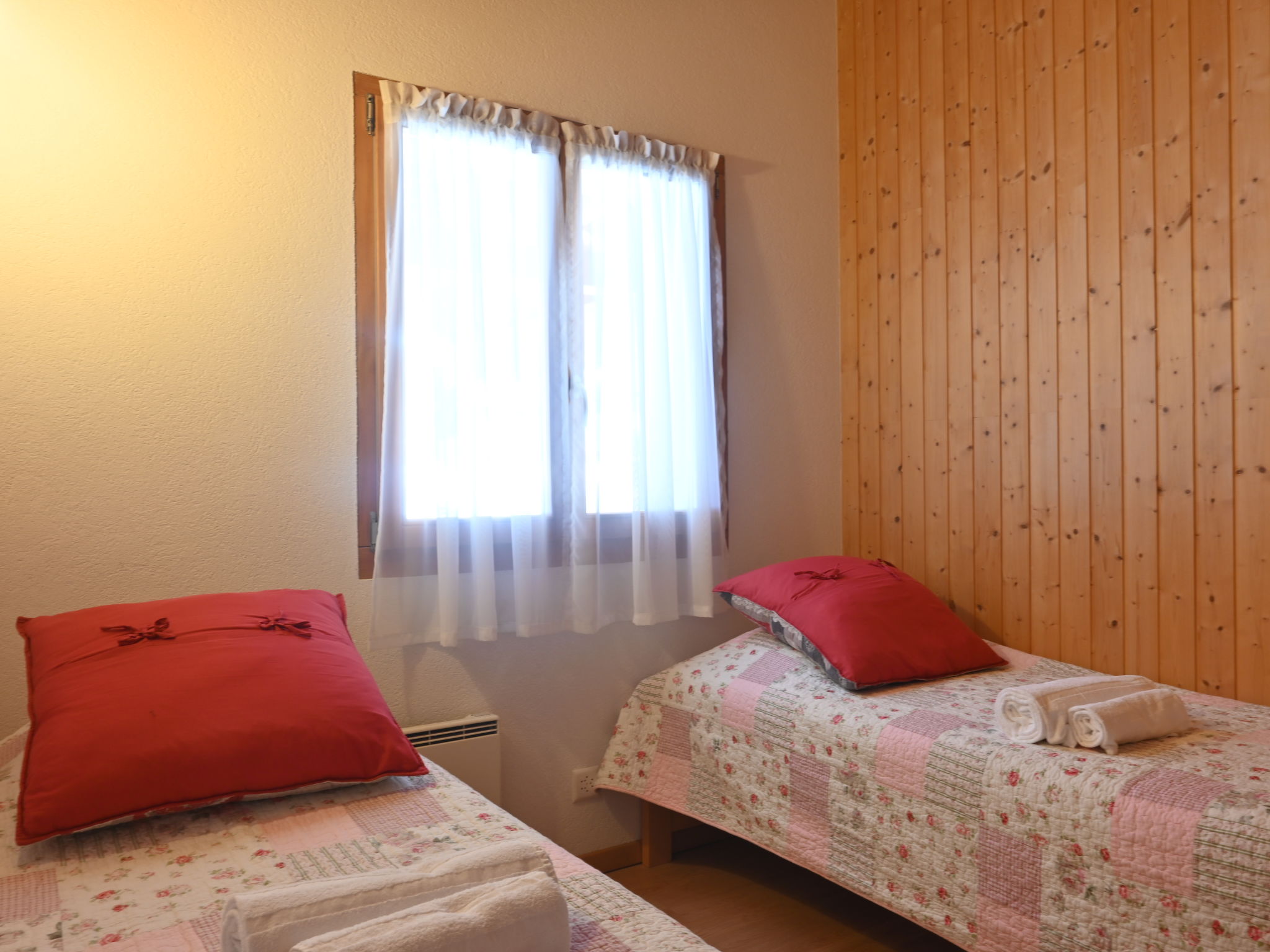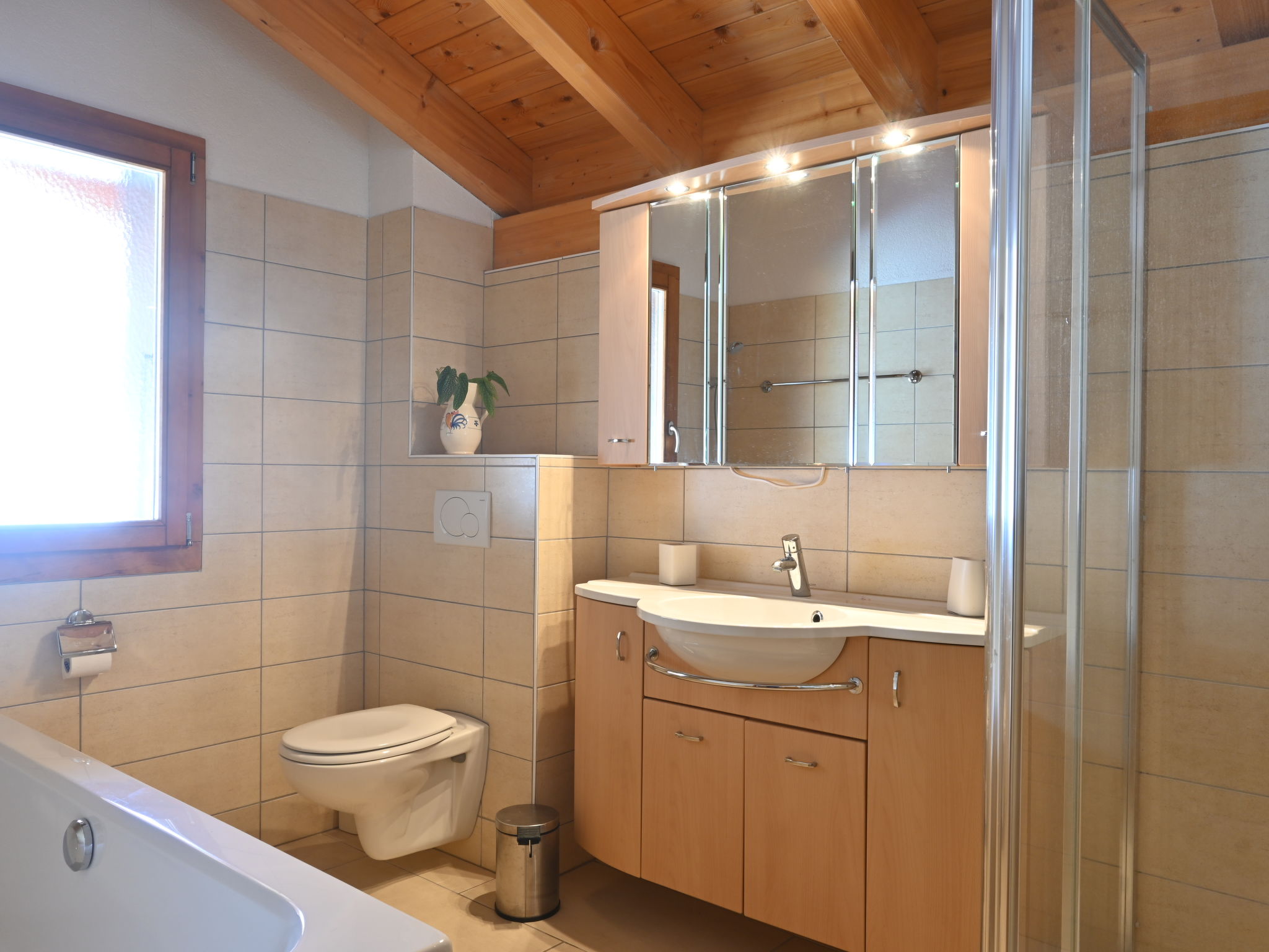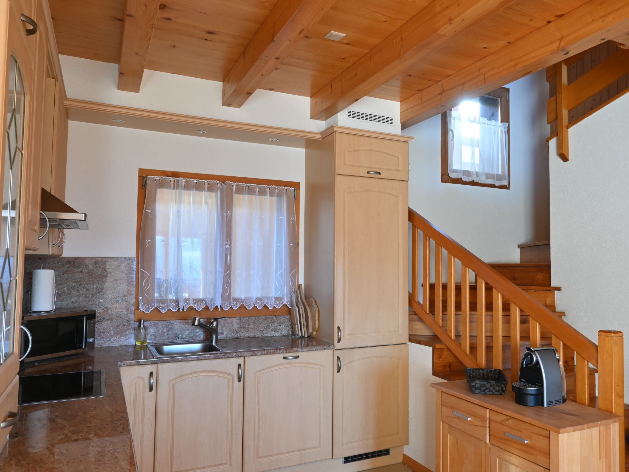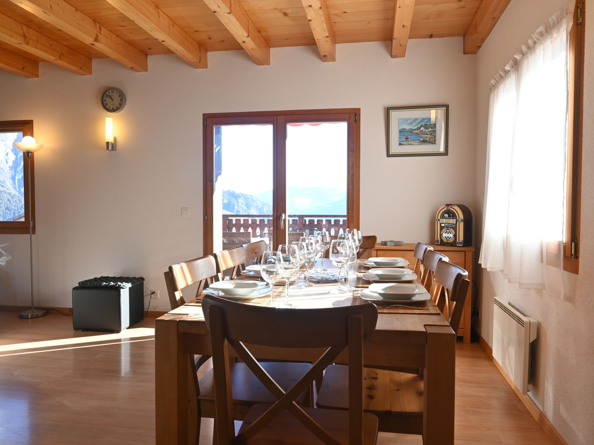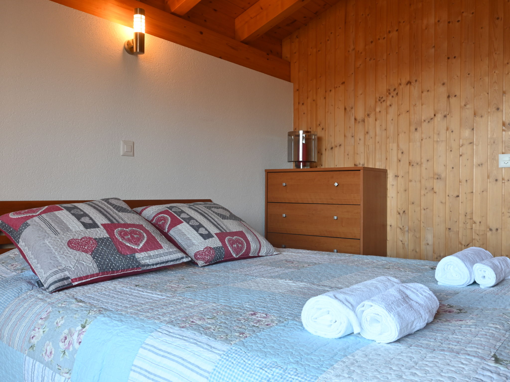 "Orchidée", chalet 5 pièces 138 m2 sur 2 niveaux, situation est. Spacieux, aménagement confortable et de bon goût: séjour/salle à manger avec TV (câblée) et poêle à bois. Sortie sur la terrasse. 1 chambre avec 1 grand-lit (1 x 160 cm, longueur 200 cm), douche/WC. Sortie sur la terrasse. Cuisine ouverte (four, lave-vaisselle, 4 plaques vitrocéramiques, cafetière électrique, Capsules pour machine à café (Nespresso) (NON INCLUSES), appareil à raclette, service à fondue (fondue chinoise)). Sortie sur la terrasse. WC séparé. À l'étage supérieur: 1 chambre avec 1 lit double (1 x 160 cm, longueur 200 cm). Sortie sur le balcon, orientée est. 1 chambre avec 1 lit double (1 x 160 cm, longueur 200 cm). Sortie sur le balcon, orientée est. 1 chambre avec 2 lits (90 cm, longueur 200 cm). Bain/douche/WC. Grande terrasse, situation est, pelouse. Meubles de terrasse, chaises longues. Très belle vue panoramique sur les montagnes et la vallée. A disposition: lave-linge, sèche-cheveux. Internet (Connexion WIFI, gratuit). Place de parking (couvert, 2 Voitures) près de la maison. Veuillez noter: logement non-fumeur. Maximum 1 animal/ chien autorisé.