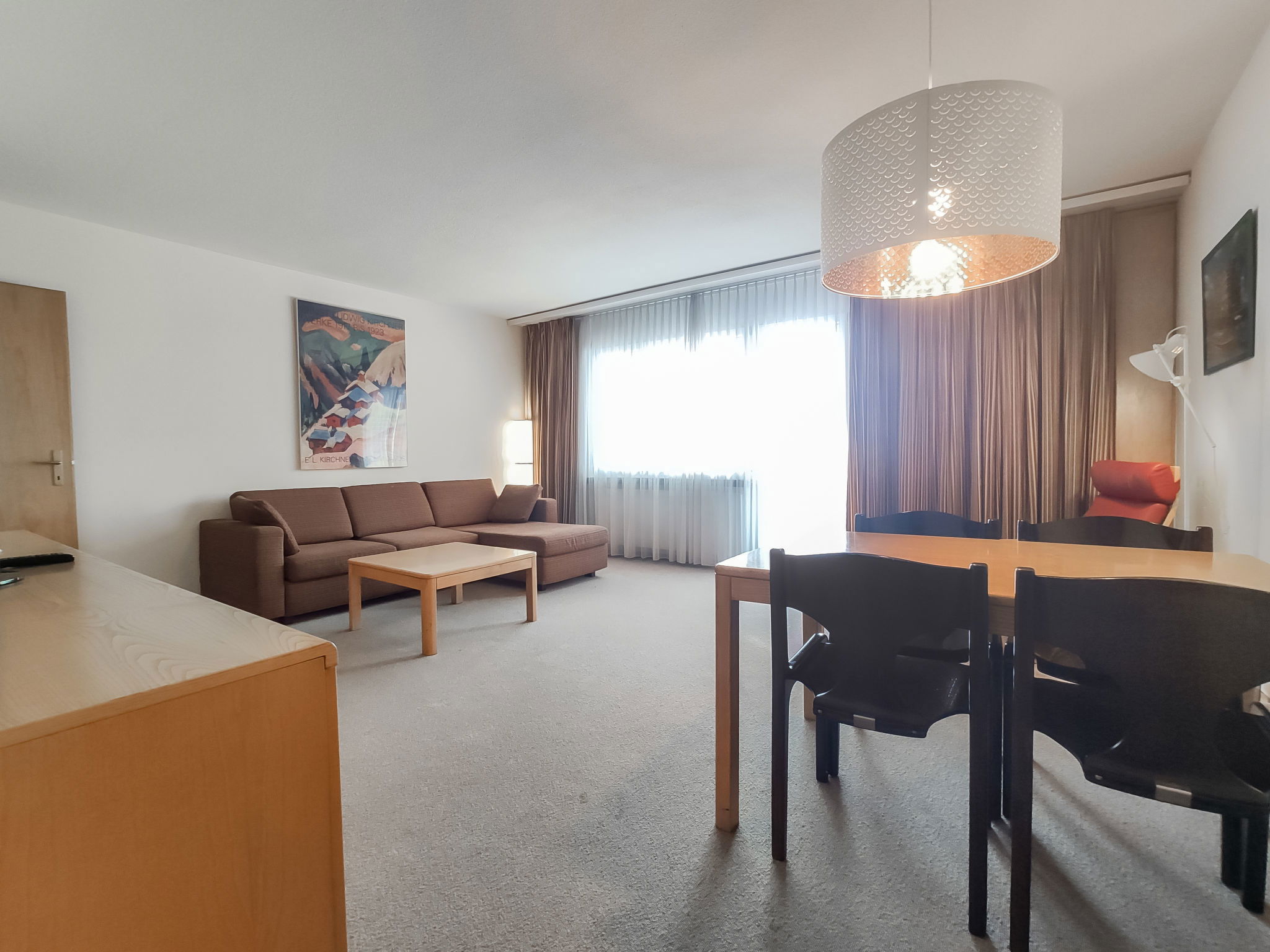 "Allod Park Haus C 505", Appartement de 3 pièces 80 m2 au 5ème étage, situation sud-ouest. Partiellement rénové en 2025, aménagement fonctionnel et plaisant: séjour/salle à manger avec 1 divan-lit, table pour les repas, TV (câblée) et écran plat. Sortie sur le balcon, orientée sud. 1 chambre avec 1 lit double (2 x 90 cm, longueur 200 cm), WC séparés. Sortie sur le balcon. 1 chambre d'enfants avec 2 lits (90 cm, longueur 200 cm). Cuisine (four, lave-vaisselle, 4 plaques vitrocéramiques, cafetière électrique, Capsules pour machine à café (Nespresso) (NON INCLUSES)). Bains ou douche/WC. Grand balcon, situation sud, petit balcon, situation ouest. Mobilier de balcon, chaises longues (4). Très belle vue panoramique sur les montagnes et la localité. A disposition: lave-linge (en sus). Sèche-linge (en sus). Internet (Connexion WIFI, gratuit). Place de parking (en sus) près de la maison. Veuillez noter: adapté(e) aux familles. Logement non-fumeur. Maximum 1 animal/ chien autorisé. 10020