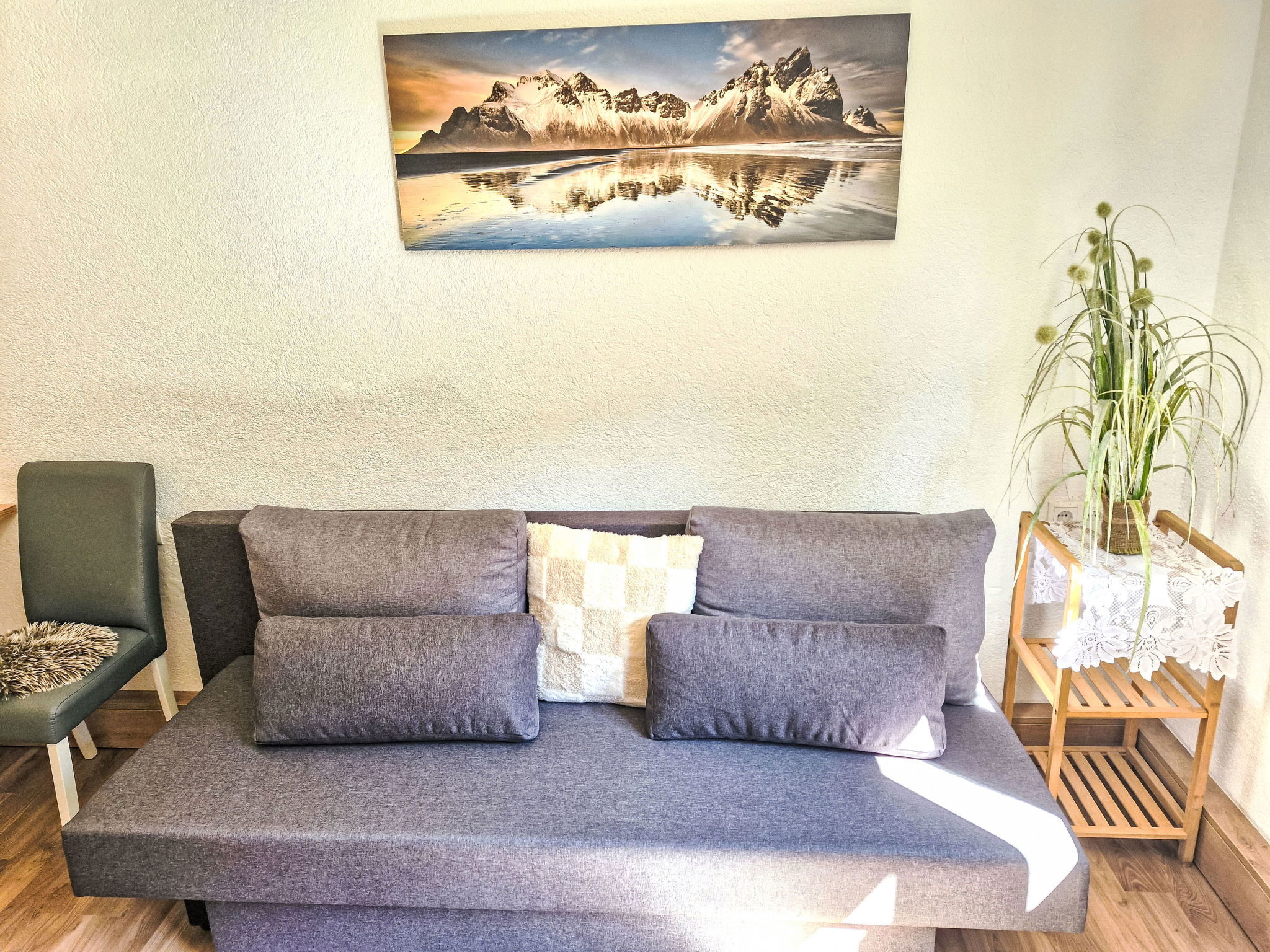 "Apart Diamant" studio 25 m2, en sous-sol. Logement idéal pour 2 adultes + 1 enfant. Aménagement fonctionnel: 1 chambre avec 1 lit et 1 lit double. Petite coin cuisine (2 plaques de cuisson, bouilloire électrique, micro-ondes, cafetière électrique) avec TV (satellite) et chaînes de TV internationales (écran plat). Douche/WC. Chauffage. Sol en parquet. Place de parking (1 Voiture) près de la maison. Maximum 1 animal/ chien autorisé.