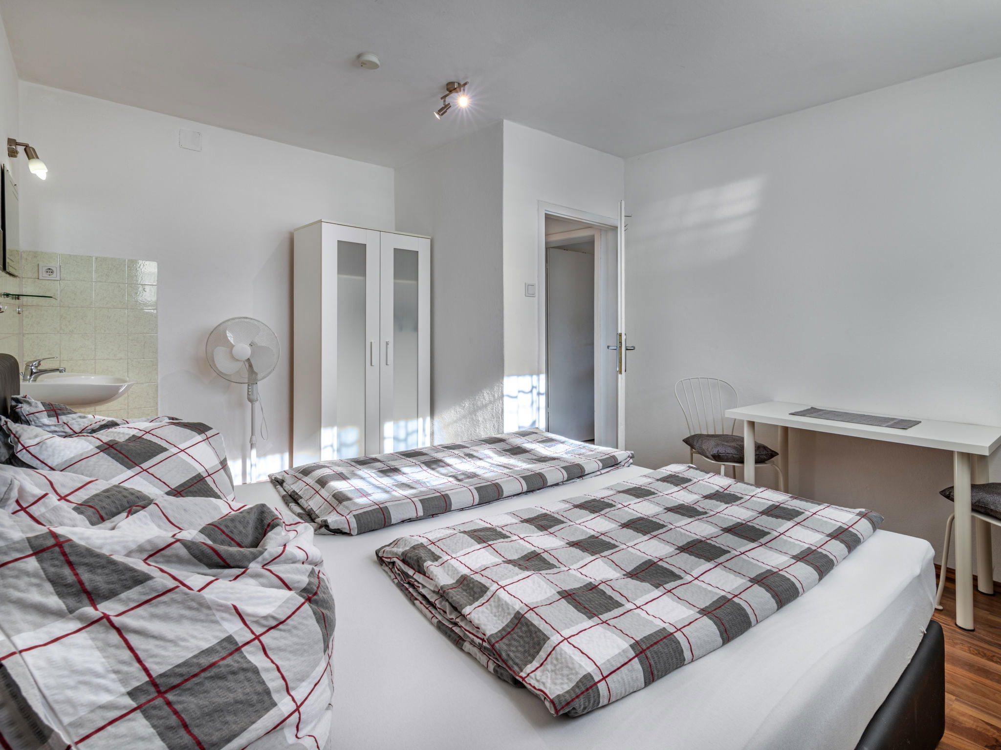 Appartement de 4 pièces 80 m2 au 2ème étage. Rénové en 2014: séjour/salle à manger mansardée avec TV (satellite) (écran plat). Sortie sur le balcon. Mansardé 2 chambres doubles, chaque chambre avec: lavabo. Mansardé 1 chambre double avec lavabo. Sortie sur le balcon. Cuisine (4 plaques de cuisson, four, micro-ondes). Douche, WC séparé. Balcon 6 m2. A disposition: Internet (Connexion WIFI, gratuit). Veuillez noter: réfrigérateur sans compartiment congélateur. Maximum 1 animal/ chien autorisé. Détecteur de fumée.