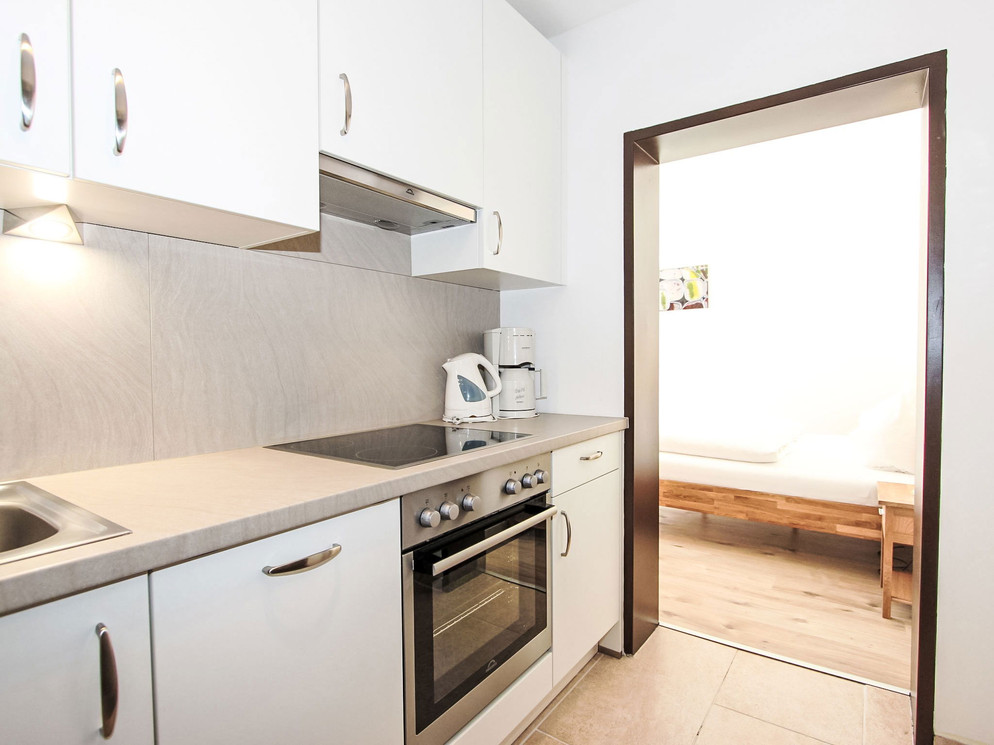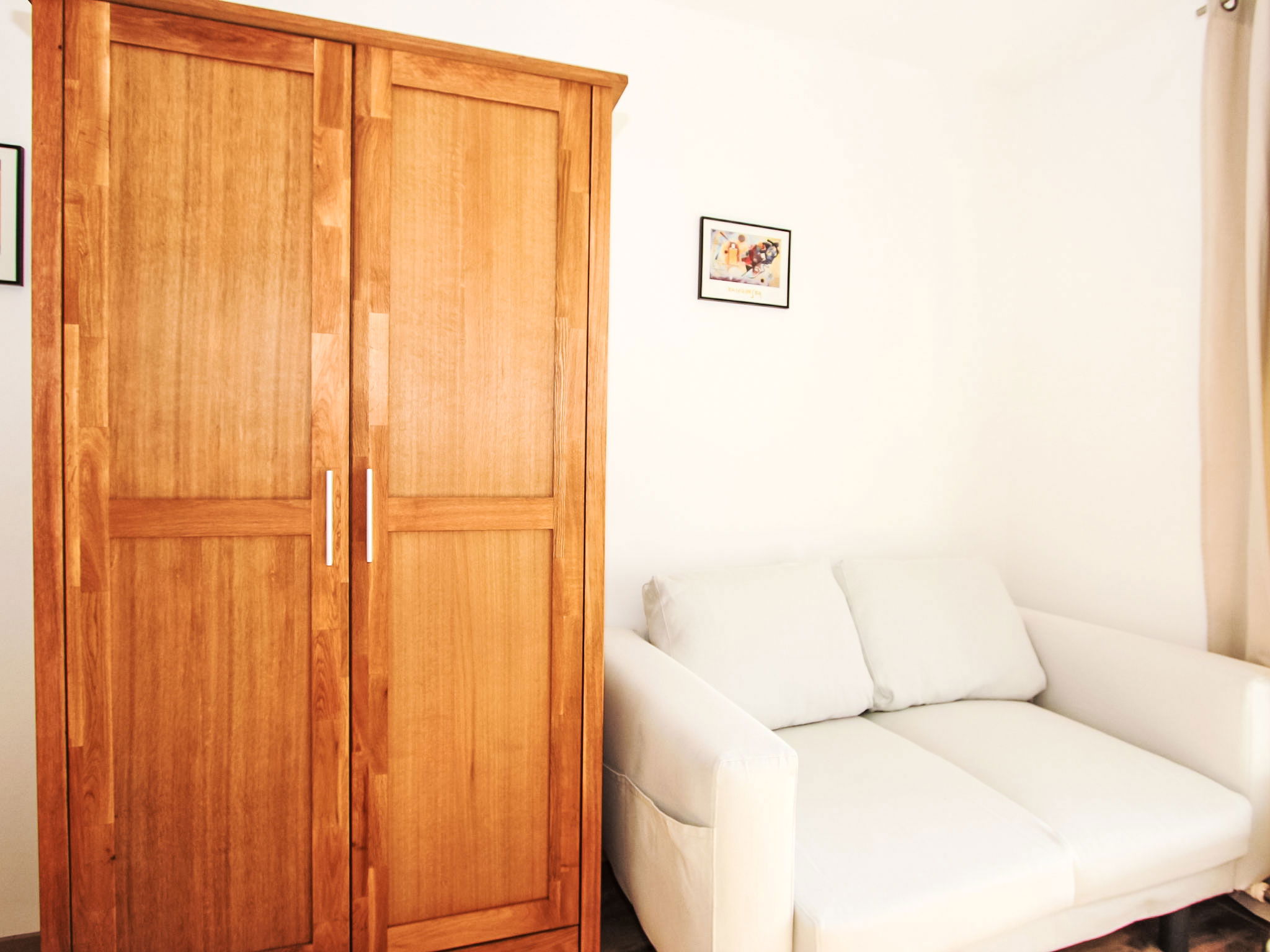 Studio 24 m2 au 1er étage. Rénové en 2017, aménagement agréable et plaisant: séjour/chambre à coucher avec 1 lit double, table pour les repas et TV (câblée) (écran plat). Coin cuisine dans l'entrée (four, lave-vaisselle, 4 plaques vitrocéramiques, micro-ondes). Douche/WC. Balcon. Mobilier de balcon, chaises longues (2). A disposition: lit bébé, sèche-cheveux. Internet (Connexion WIFI, gratuit). Veuillez noter: logement non-fumeur. Maximum 1 animal/ chien autorisé. Pour 50€.