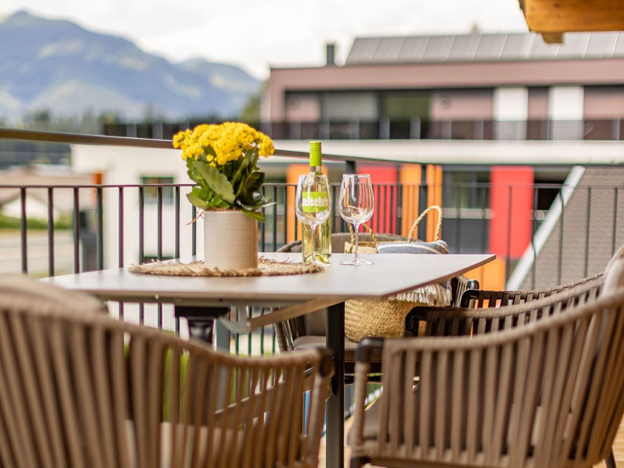 "Top 6", Appartement de 2 pièces 65 m2 au 2ème étage. Clair, aménagement très moderne et de bon goût: entrée. 1 chambre double avec TV (câblée) (écran plat). Cuisine/séjour (four, lave-vaisselle, grille-pain, bouilloire électrique, cafetière électrique) avec 1 divan-lit double, table pour les repas et TV (câblée) (écran plat). Sortie sur le balcon. Douche/WC. Chauffage par le sol. Sol en pierres naturelles. Grand balcon 15 m2. Mobilier de balcon. Très belle vue sur les montagnes et les alentours. A disposition: Internet (Connexion WIFI, gratuit). Veuillez noter: maison non-fumeur. 1 animal/ chien autorisé. Détecteur de fumée. 50602-000351-2022