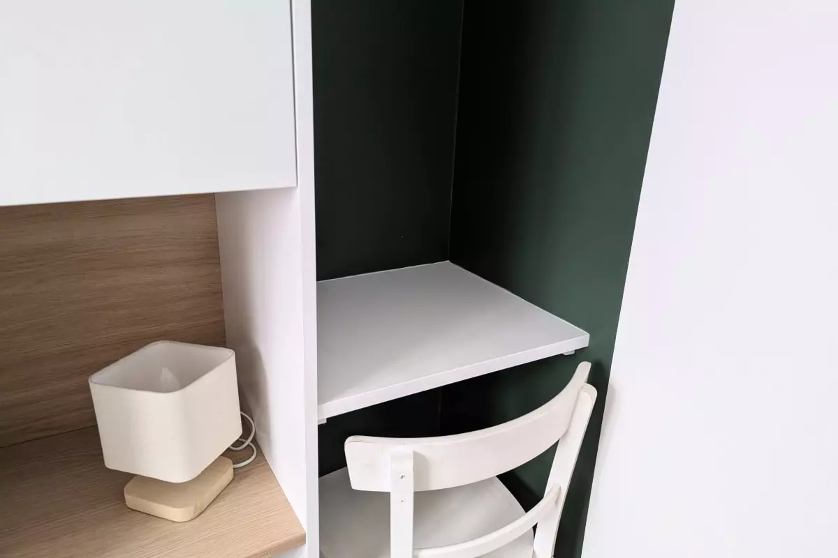 - une chambre avec un lit double en 160 et un petit espace de télétravail ;