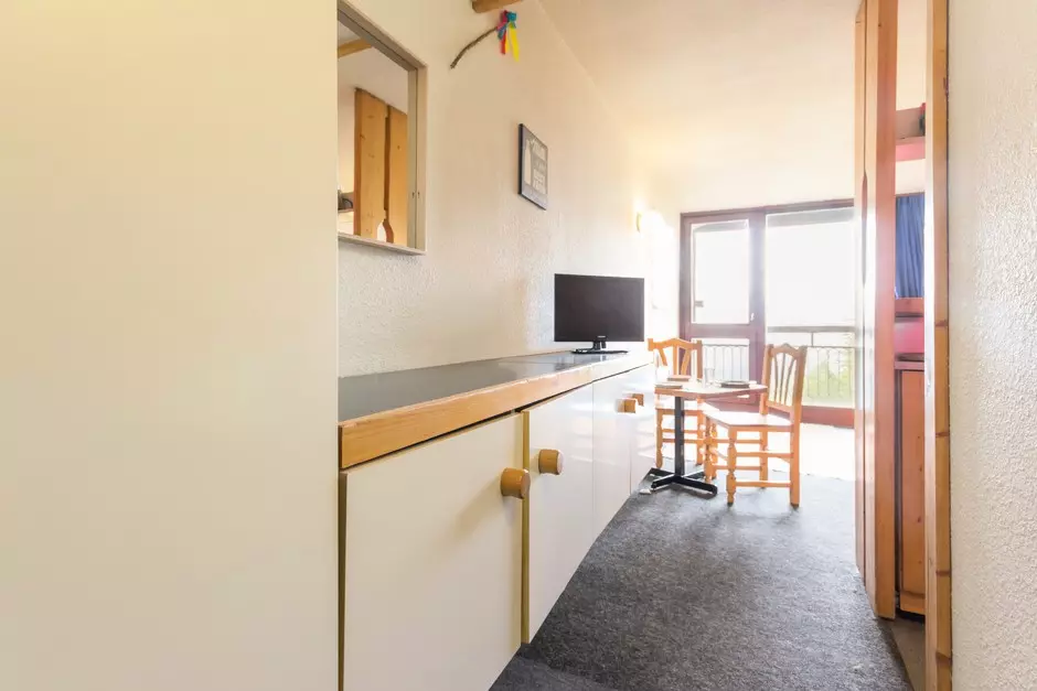 Studio cabine d'une superficie de 29m² pour 5 personnes, situé au 11ème étage de la résidence Varet 3, balcon exposé Nord/Nord-Ouest avec vue côté Mont Blanc