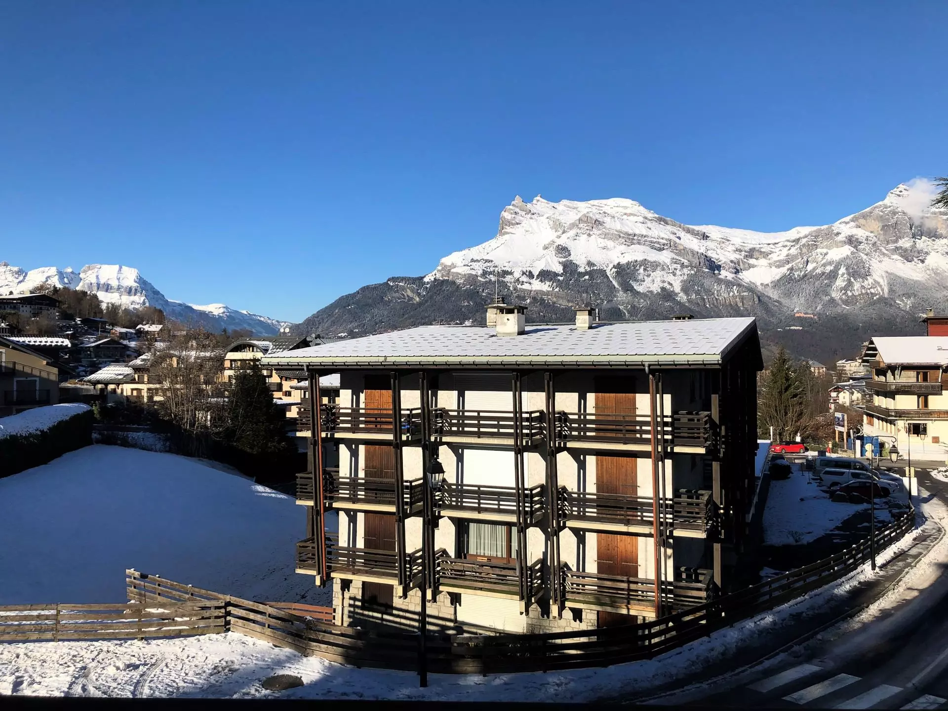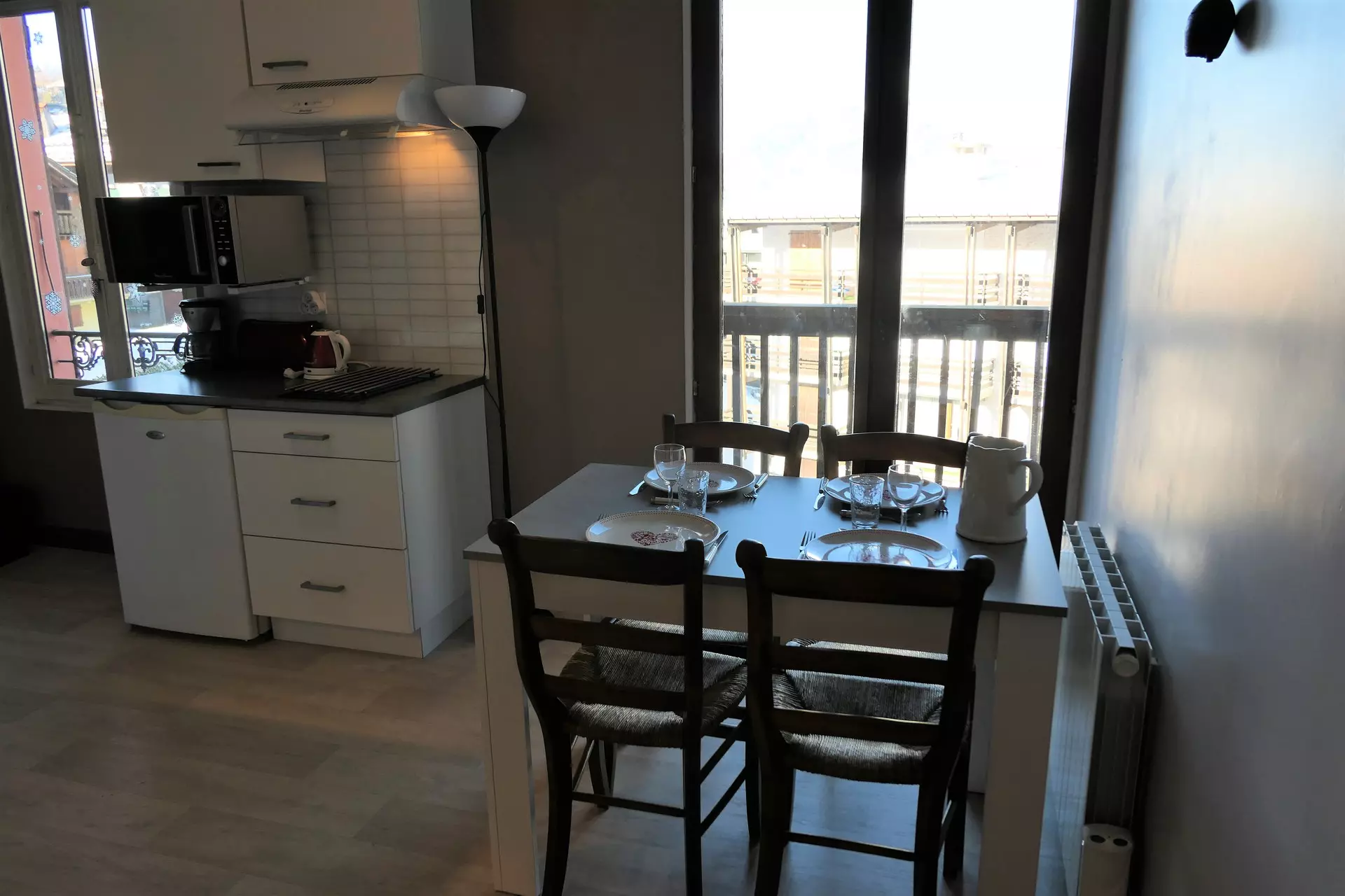 Le studio est au 1er étage. Il offre une exposition Nord avec vue sur la chaîne des Fiz et possède un balcon.