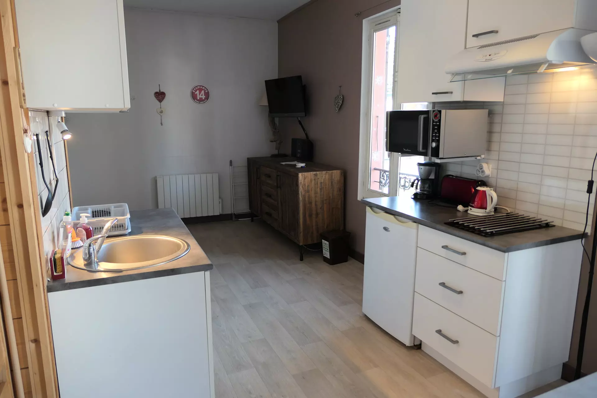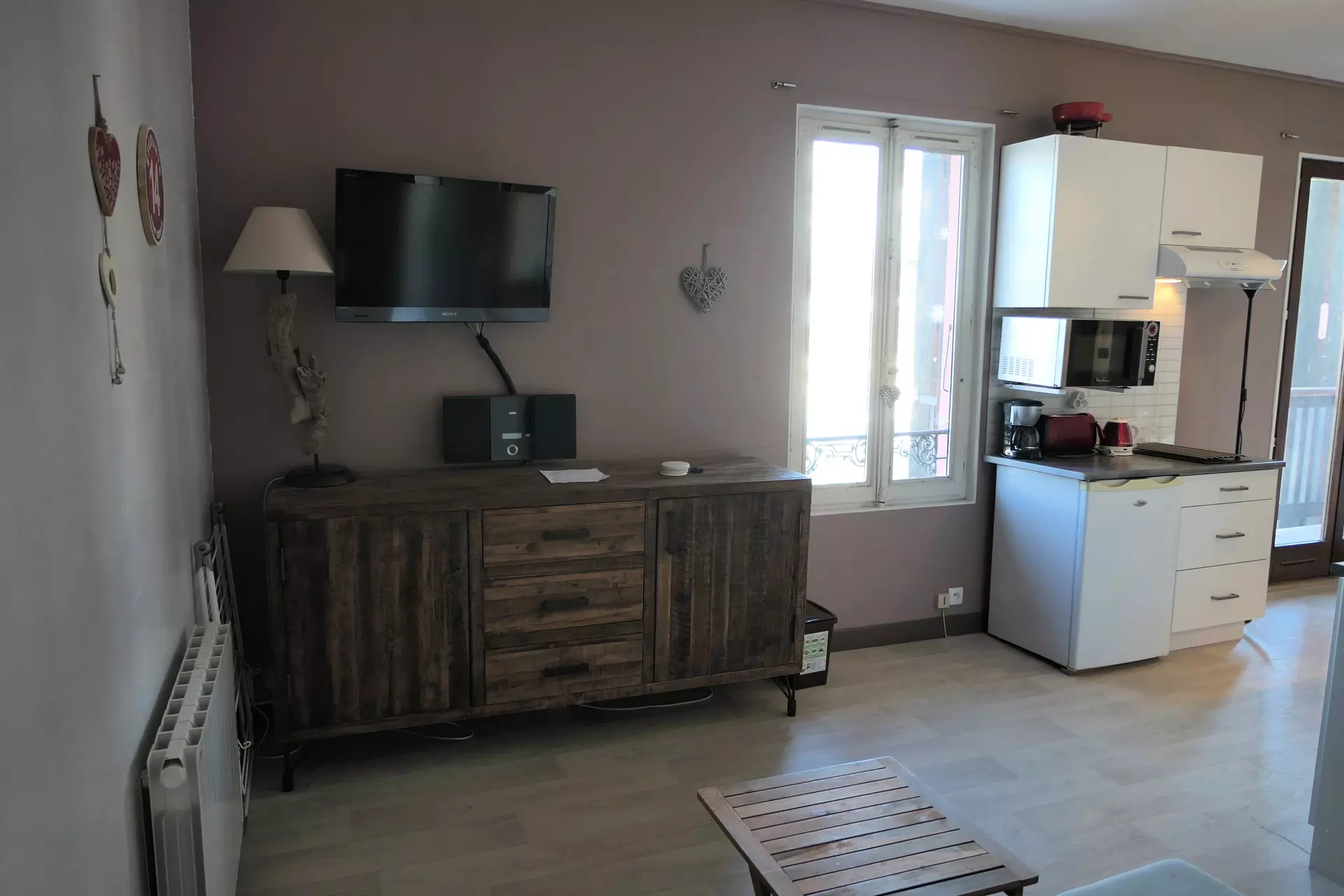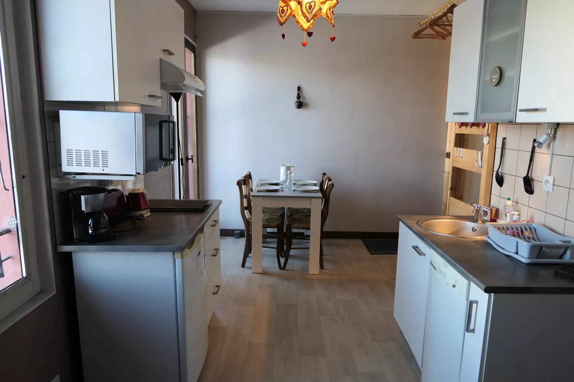 - Kitchenette with fridge, 2 ceramic hobs, filter coffee maker, microwave, toaster, kettle, dishwasher, fondue set.