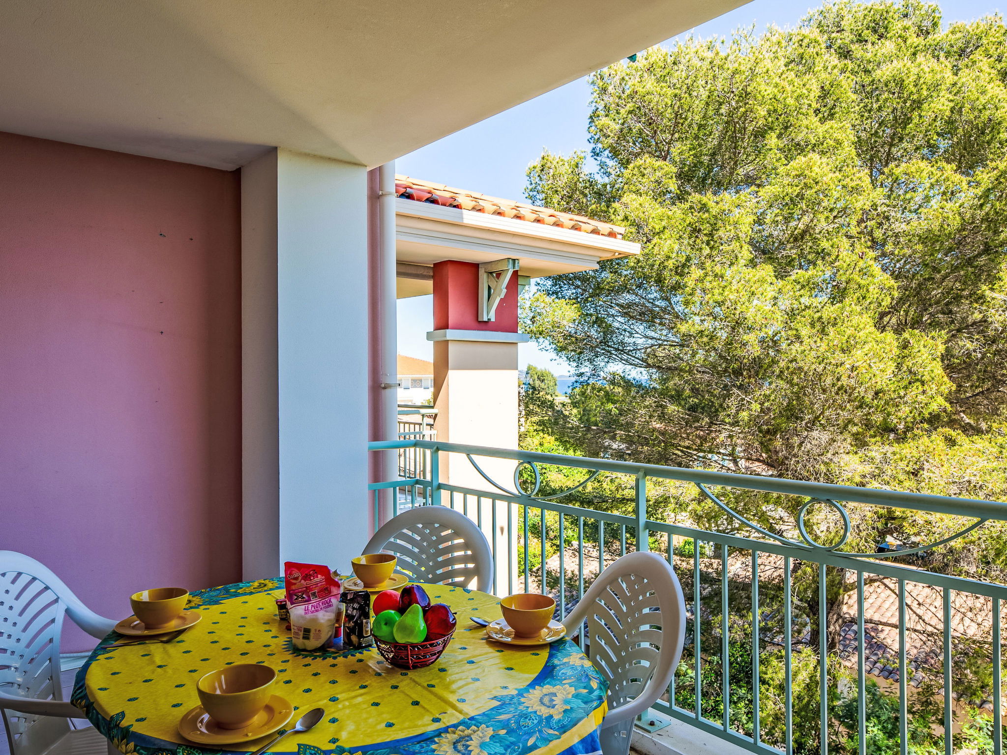 Belle résidence moderne "Les Calanques du Parc", de 4 étages, année de construction 2003, environnée par les arbres. Dans la localité, à 200 m du centre, dans un quartier résidentiel, à 300 m de la mer, à 300 m de la plage. En commun: parc (clôturé), piscine rectangulaire cloturée (disponibilité saisonnière: 15.Mai. - 28.Sep. horaires d'ouverture de la piscine: 09:00-20:00). Bassin pour les enfants. Infrastructures de la résidence: ascenseur. Place de parking (couvert). Magasins 350 m, centre commercial 5 km, centre à 5 minutes à pieds, arrêt de bus "Grand Parc" 260 m, gare ferroviaire "Fréjus" 6 km, plage de sable 500 m, parc "Areca" 100 m, centre de plongée 6 km, centre thermal "Thalasso de Port Fréjus" 6 km. Port plaisance 500 m, terrain de golf (18 trous) 8 km, ecole de voile 7 m, centre équestre 1 km, centre sportif 500 m. Attractions à proximité: Lunapark, Aqualand 5 km, Fréjus 6 km, Saint Raphaël 8 km, St Tropez 30 km, Cannes 47 km, Nice 71 km. Les domaines skiables de renommée sont facilement accessibles: Auron, Isola 2000 150 km. Les lacs connus sont facilement accessibles: Lac de St Cassien 45 km, Lac du Du Verdon 90 km. Région de randonnées: Estérel 16 km, Sentier du Littoral 300 m. La remise des clés a lieu à l’agence de Saint Aygulf.