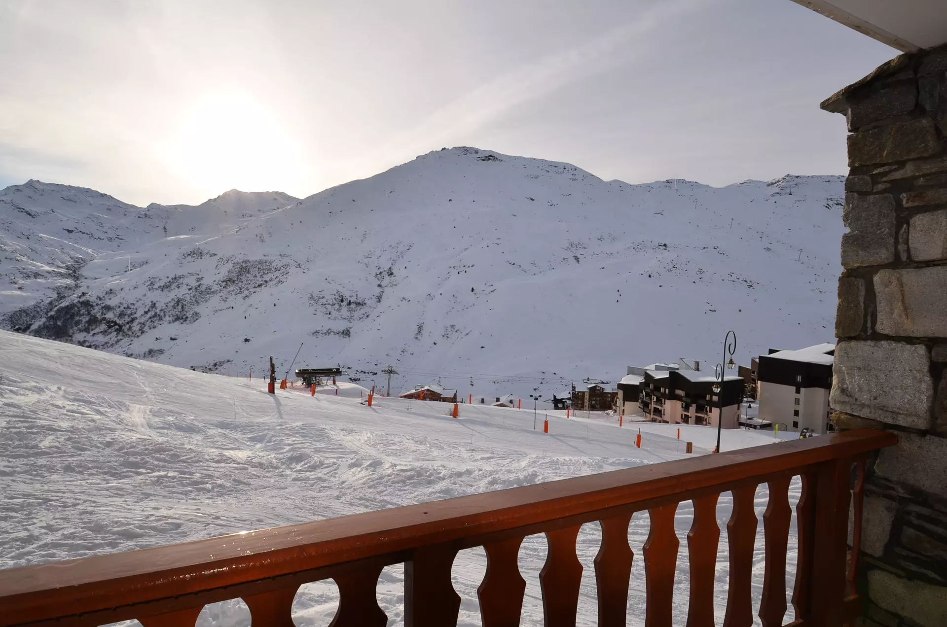 Résidence Les Côtes d'Or, chalet Argentière (n°101), accès au chalet par escaliers, 3 pièces pour 6 personnes, 45 m²,au 1er étage côté balcon par escaliers, balcon exposé Sud-Ouest
