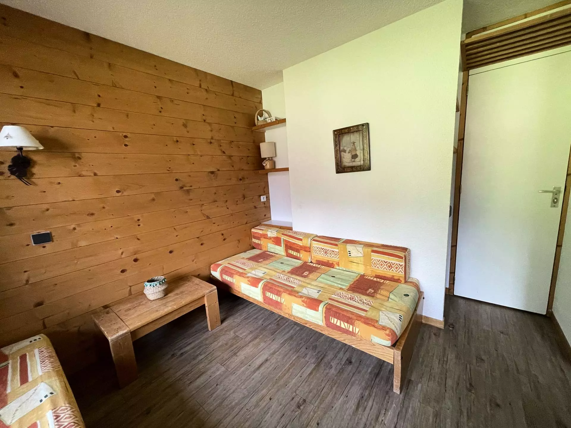 Le séjour, divisible par une cloison, est meublé de 4 lits simples, tous équipés de couvertures.