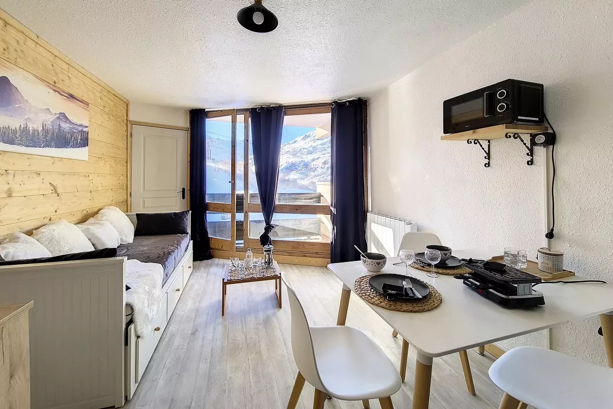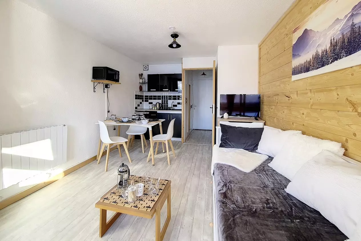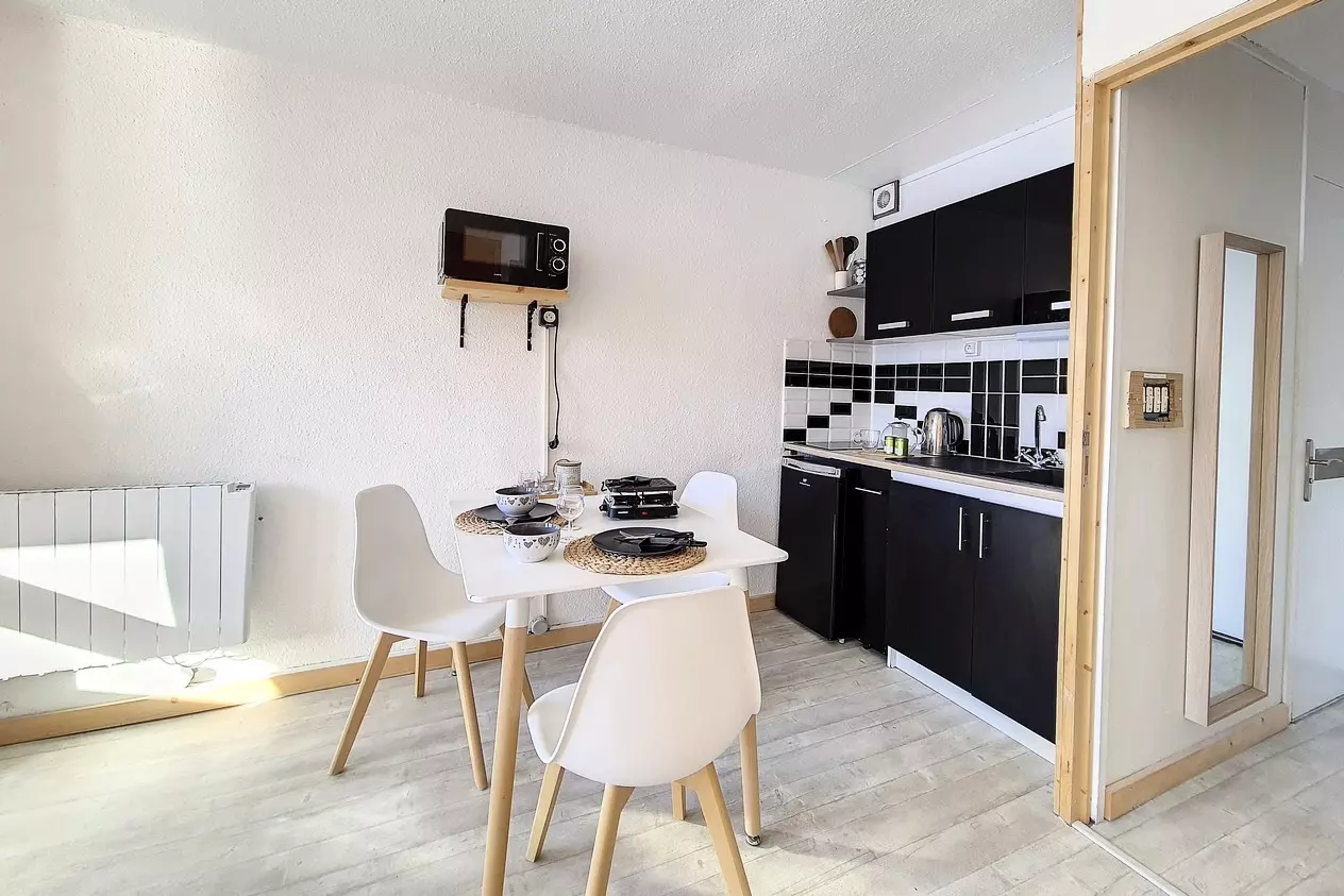 Studio de 20m² pour 4 personnes situé au 8ème étage avec ascenseur. Il a un balcon orienté Sud Est. Entrée n°1