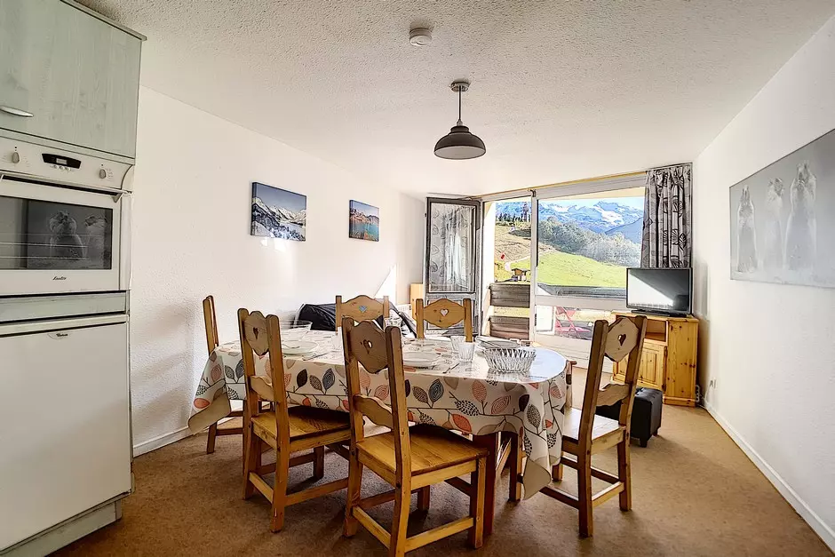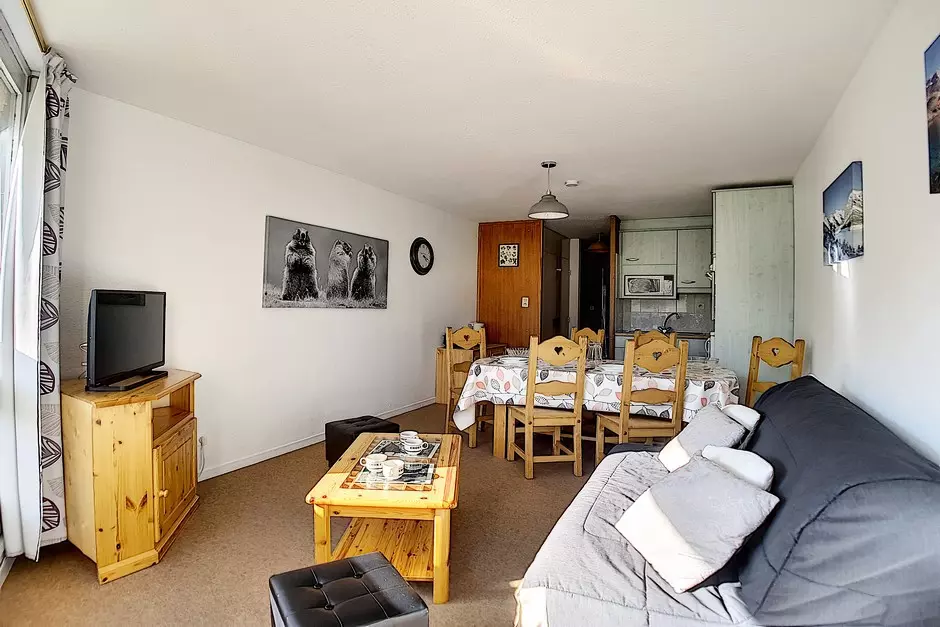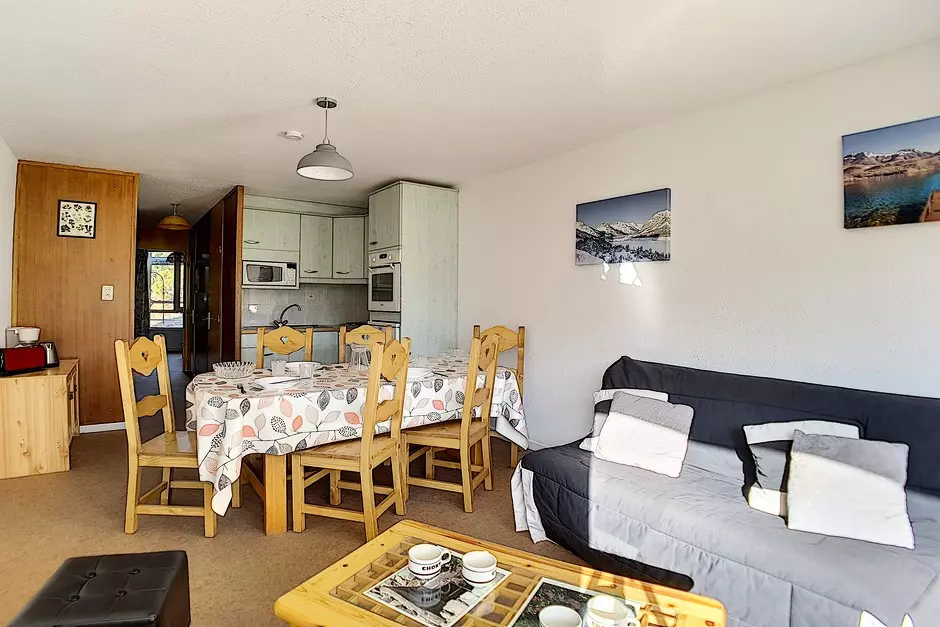 Appartement de 2 Pièces 40 m² pour 6 personnes avec balcon orienté Sud (chambre au Nord). Il est situé au 3ème étage avec ascenseur.