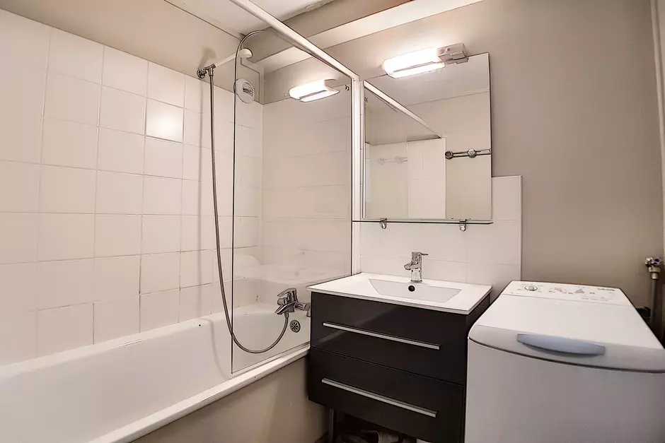 Salle de bain avec Baignoire, WC indépendant et machine à laver.