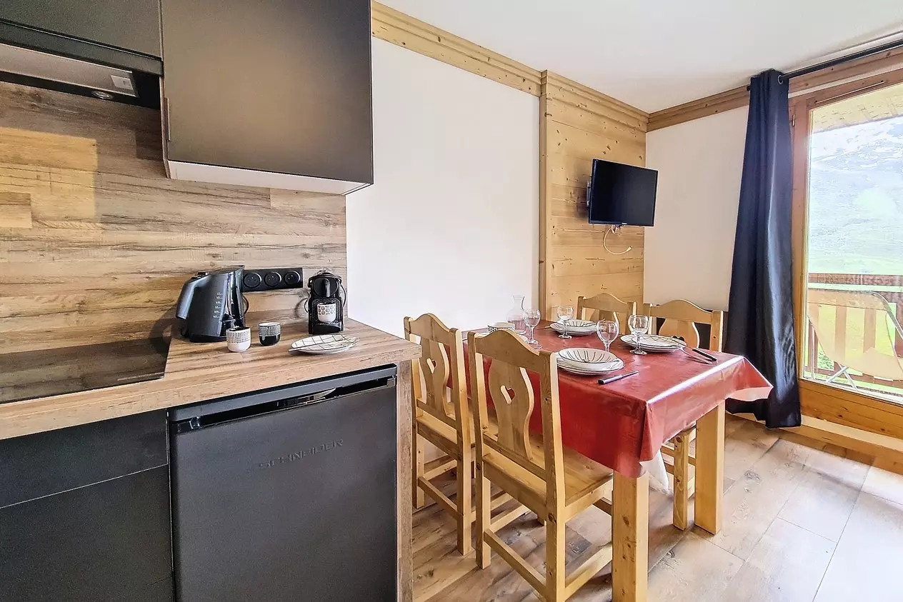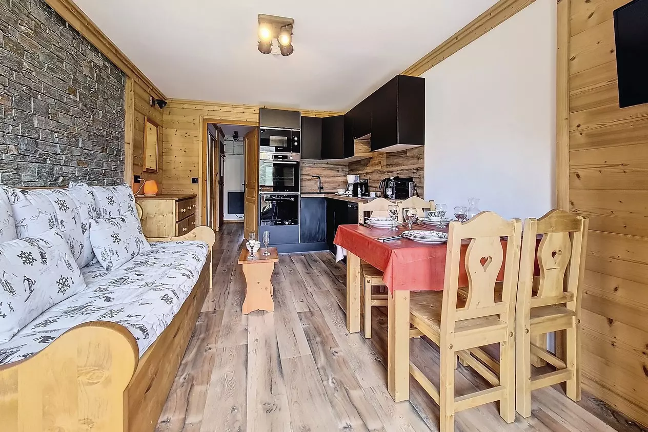 un style montagne actuel. l est situé au 12ème étage avec un balcon exposé Sud.