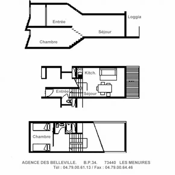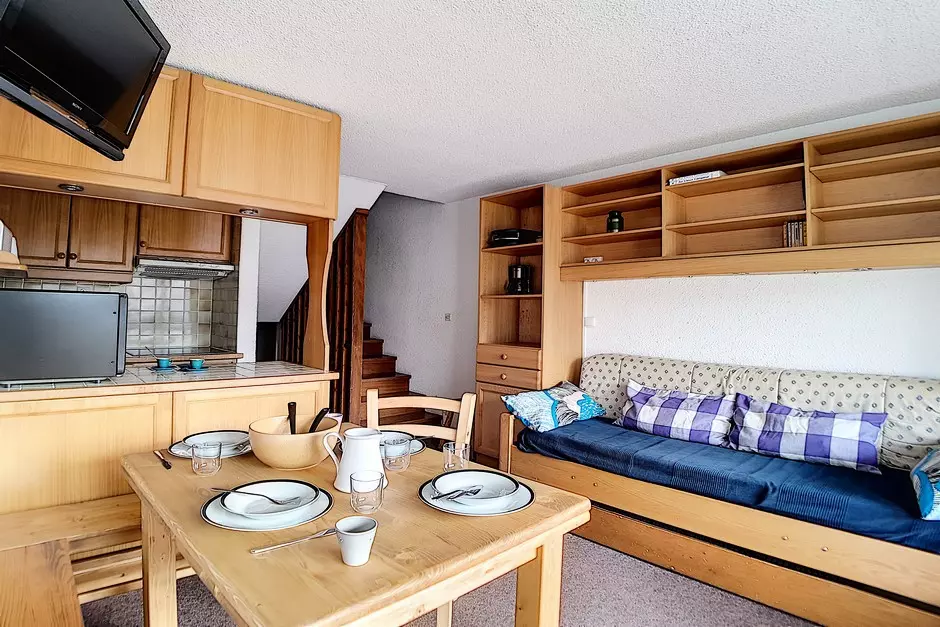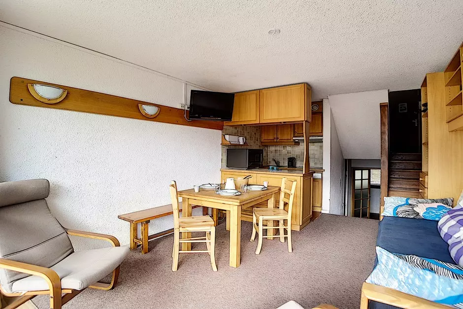Appartement 2 Pièces en duplex de 37 m² pour 5 personnes avec un balcon orienté Sud/Ouest situé au 5ème étage avec ascenseur.