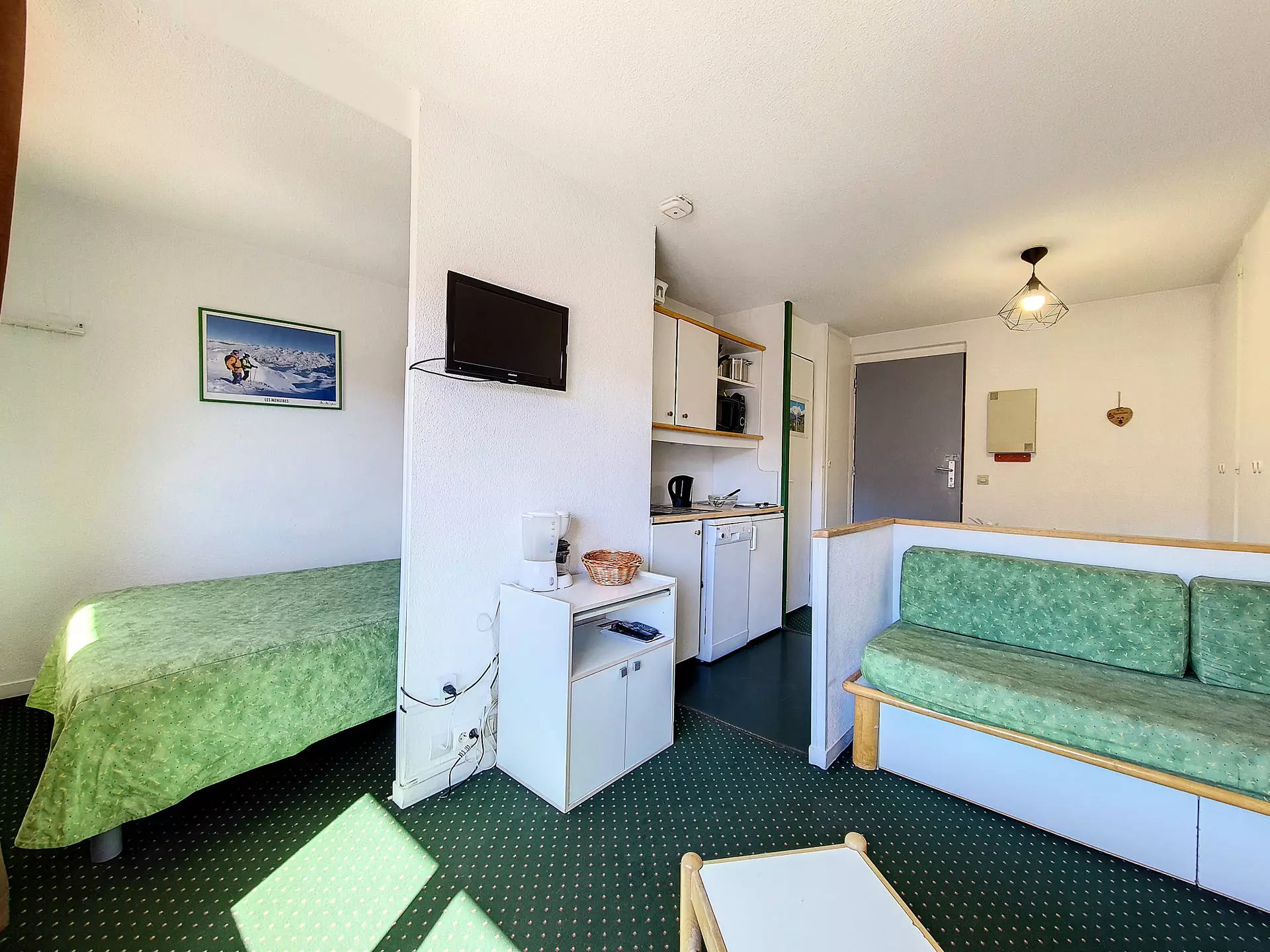 Appartement très lumineux de 2 pièces pour 4 personnes de 26m². Il est situé au 7ème étage et il dispose d'un balcon Sud-Ouest.