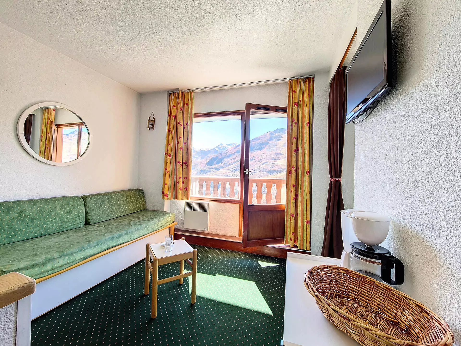 Séjour avec porte fenêtre donnant sur un grand balcon : 2 lits simples. Equipé d'une télévision.